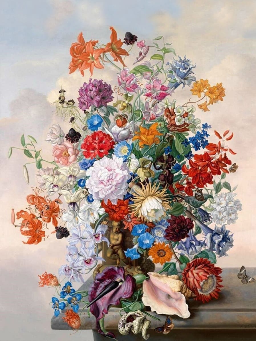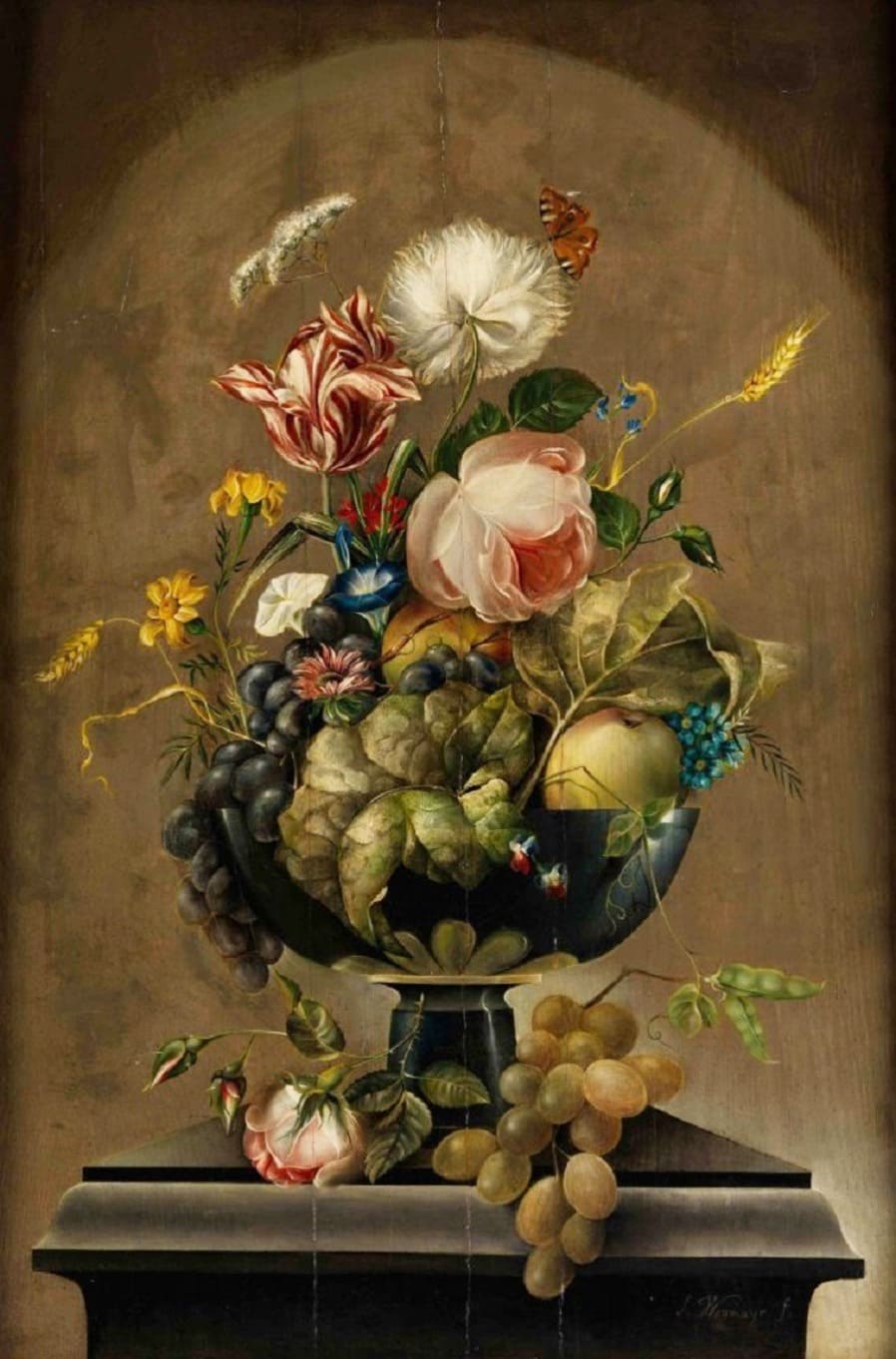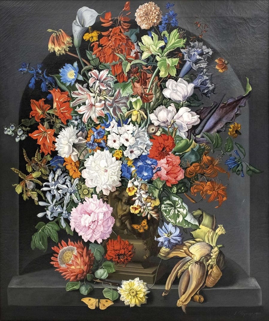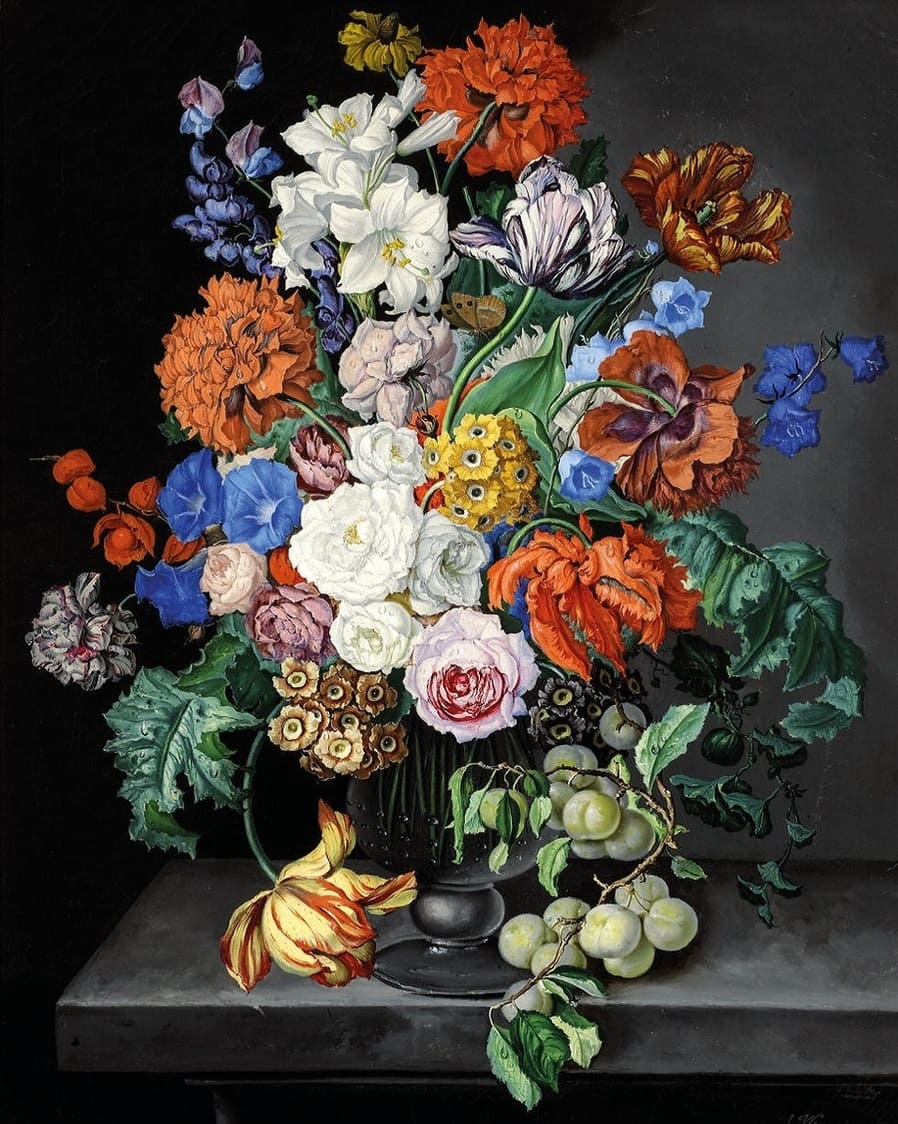 Большой декоративный натюрморт с цветами, проданный в Dorotheum, Вена, в 2010 году ЗА 41 411 долларов США.