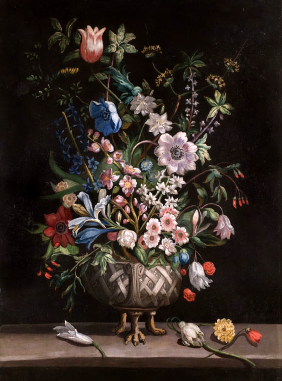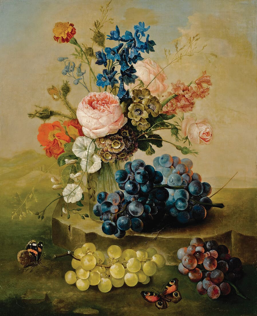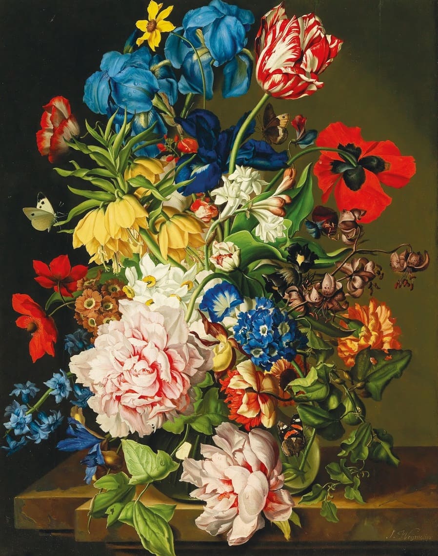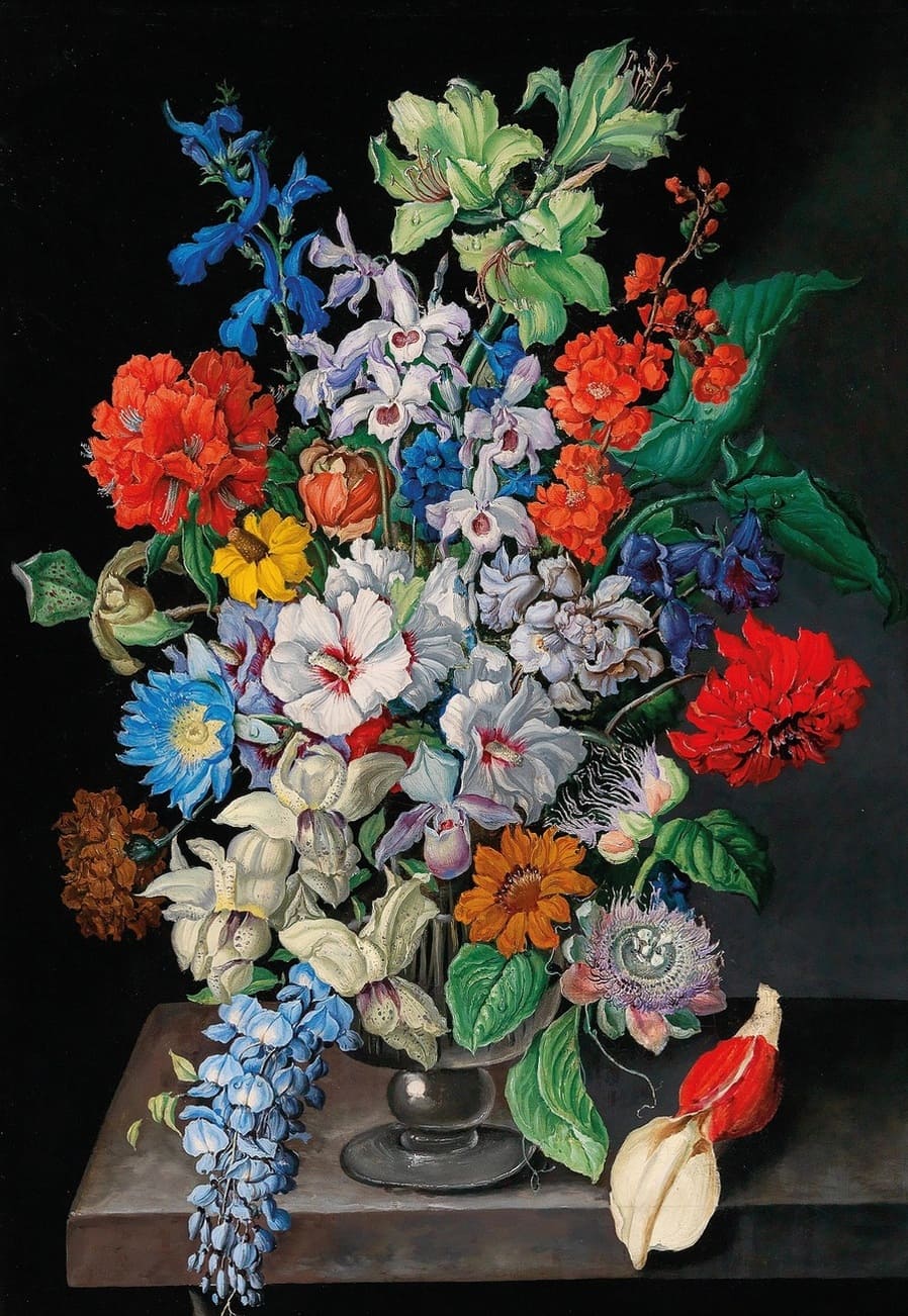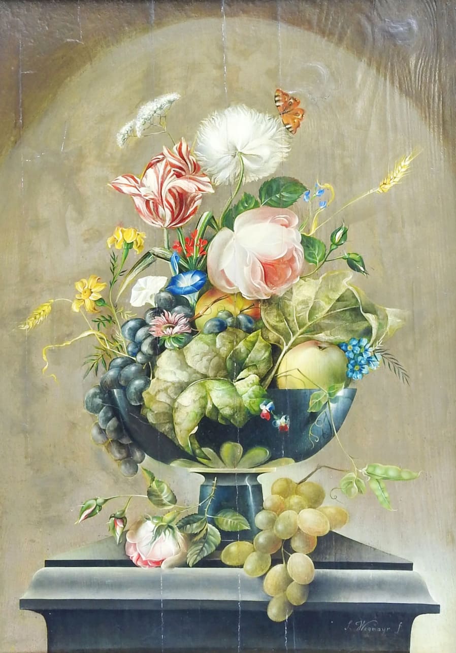 Большой декоративный натюрморт с цветами, проданный в Dorotheum, Вена, в 2010 году ЗА 41 411 долларов США.