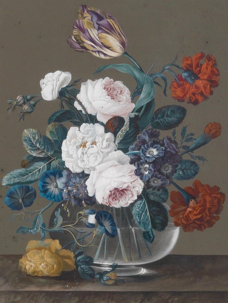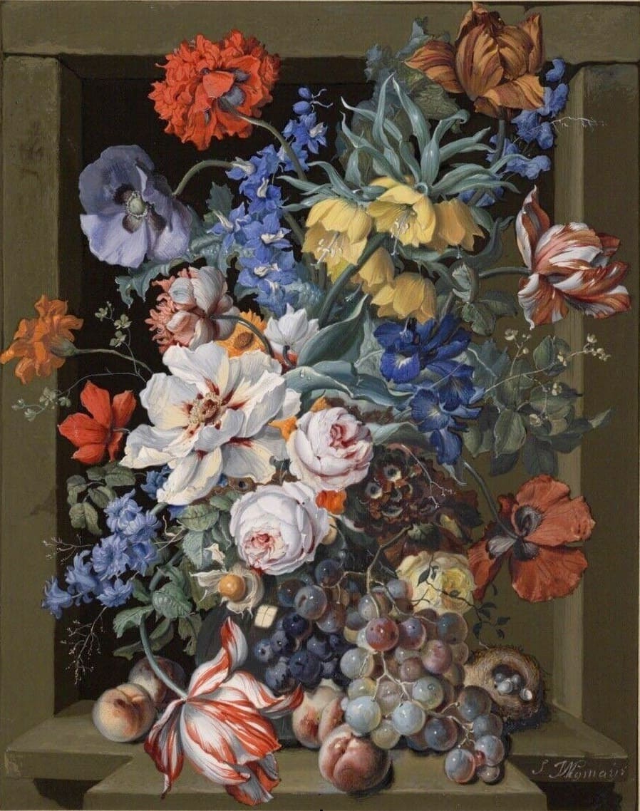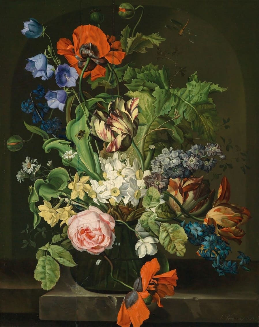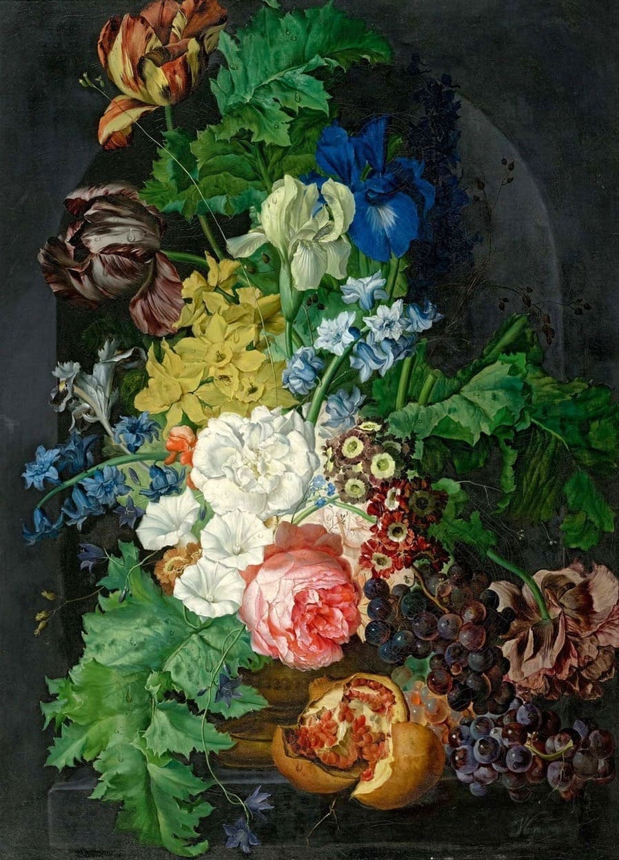 Большой декоративный натюрморт с цветами, проданный в Dorotheum, Вена, в 2010 году ЗА 41 411 долларов США.