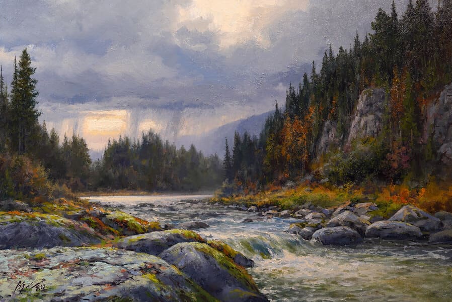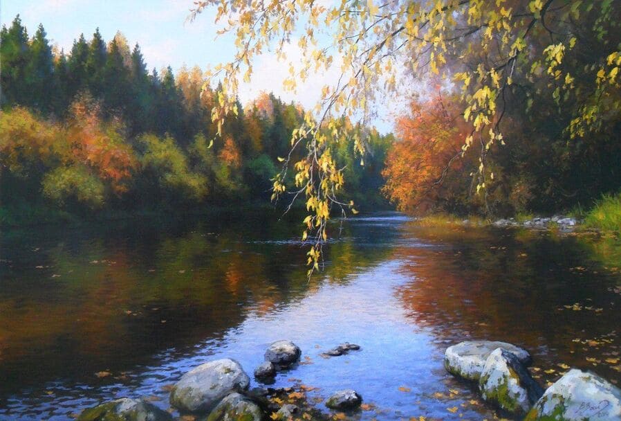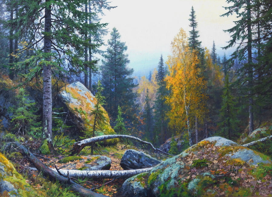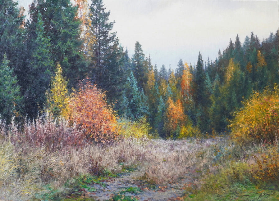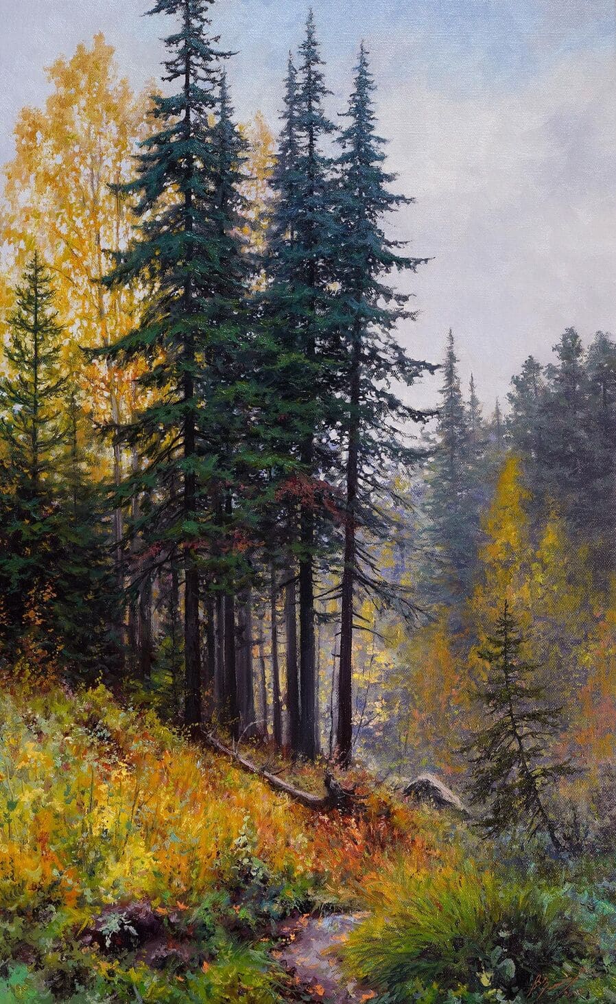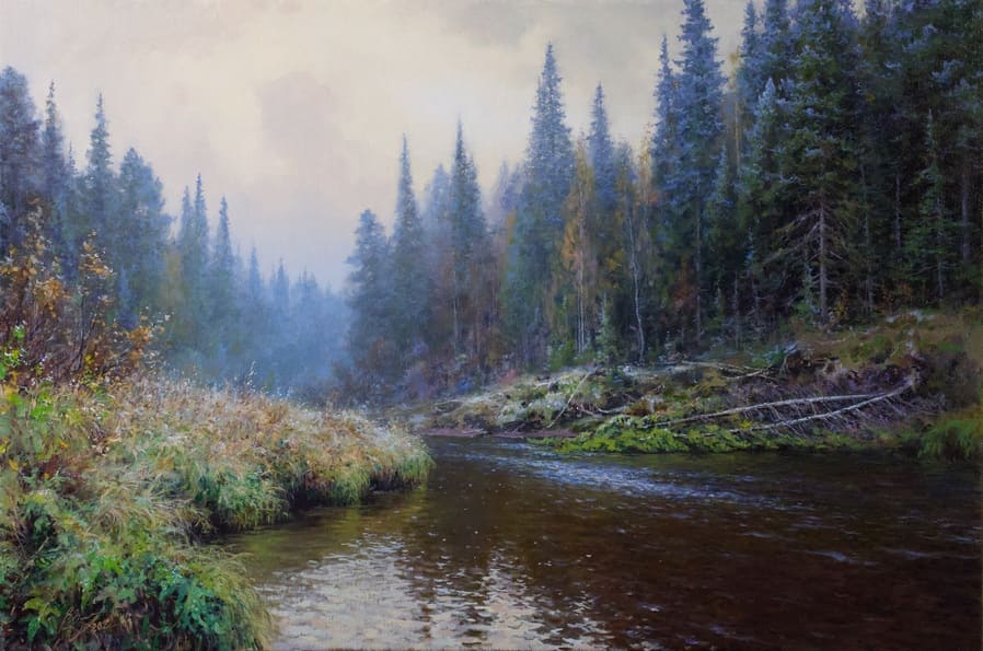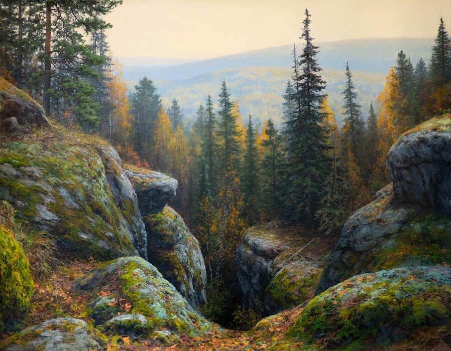 Надо сказать, что не только пейзажи ложатся на холсты маэстро. Есть сюжеты из сказок Бажова, в стиле фэнтэзи, и редкие женские портреты.