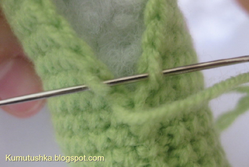 Пришиваем хвостик. Его можно пришить куда пожелаете, но я обычно от шва отсчитываю 5 рядов и к шестому пришиваю - прямо посередине)))