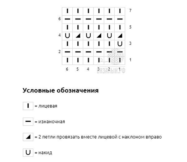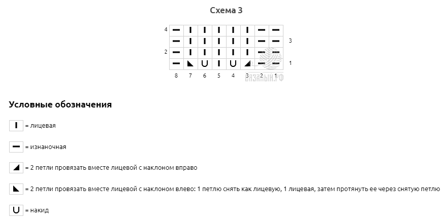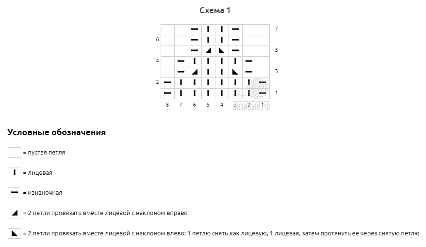 Провязать по схеме 1 один раз с 1 по 7 ряд: