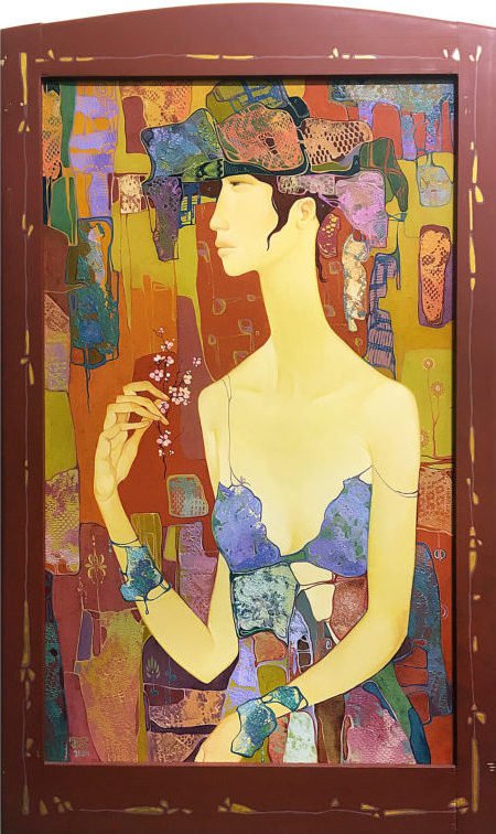 «Цветок вишни», 2004, Холст, масло, деревянный багет авторской работы, 71×43см.