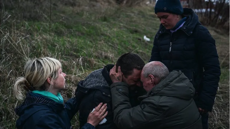 І я побачив ці всі фотографії, які стали символами воєнних злочинів, скоєних путінською Росією. І ті фотографії, на яких зображені десятки українців, страчених російськими солдатами, дехто зі зв'язаними за спиною руками. І ті трупи зі слідами тортур і слідами від куль у головах. Ці історії про жахливі зґвалтування.