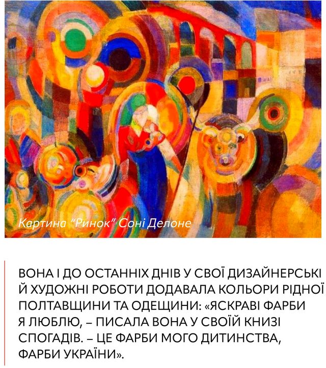 Дякую, Ірино, дуже цікаво. Зараз важливо пригадувати таких видатних людей як Соня Делоне і наголошувати на її українському походженні? Як би прикро це не звучало, та в багатьох виданнях, книгах, публікаціях та навіть музеях Соню Делоне називають російською мисткинею, країна-агресорка звикла присвоювати собі чужі здобутки.