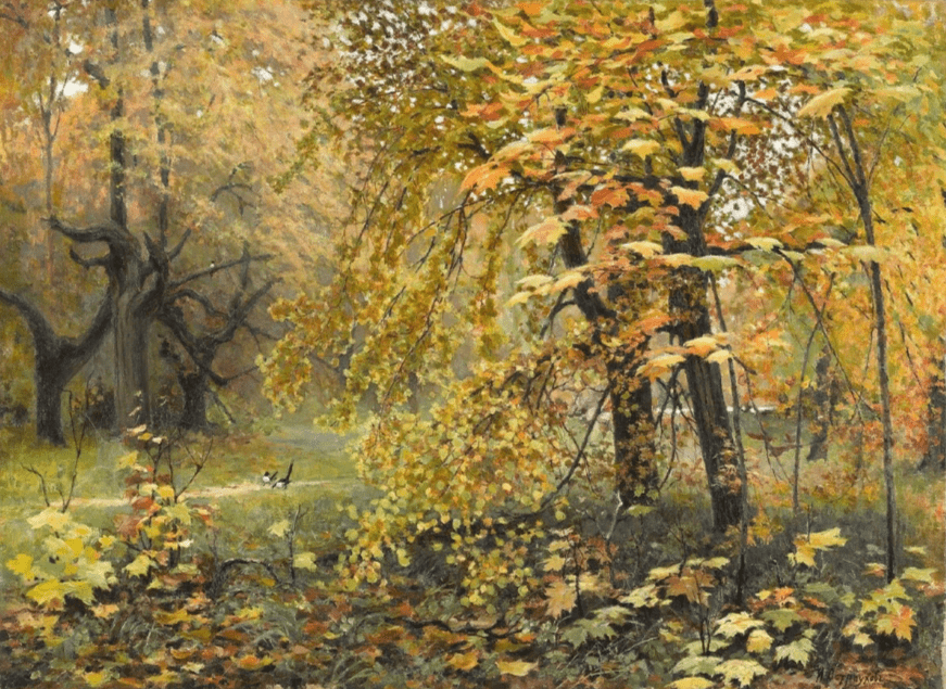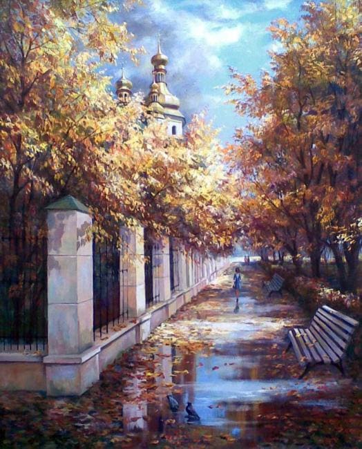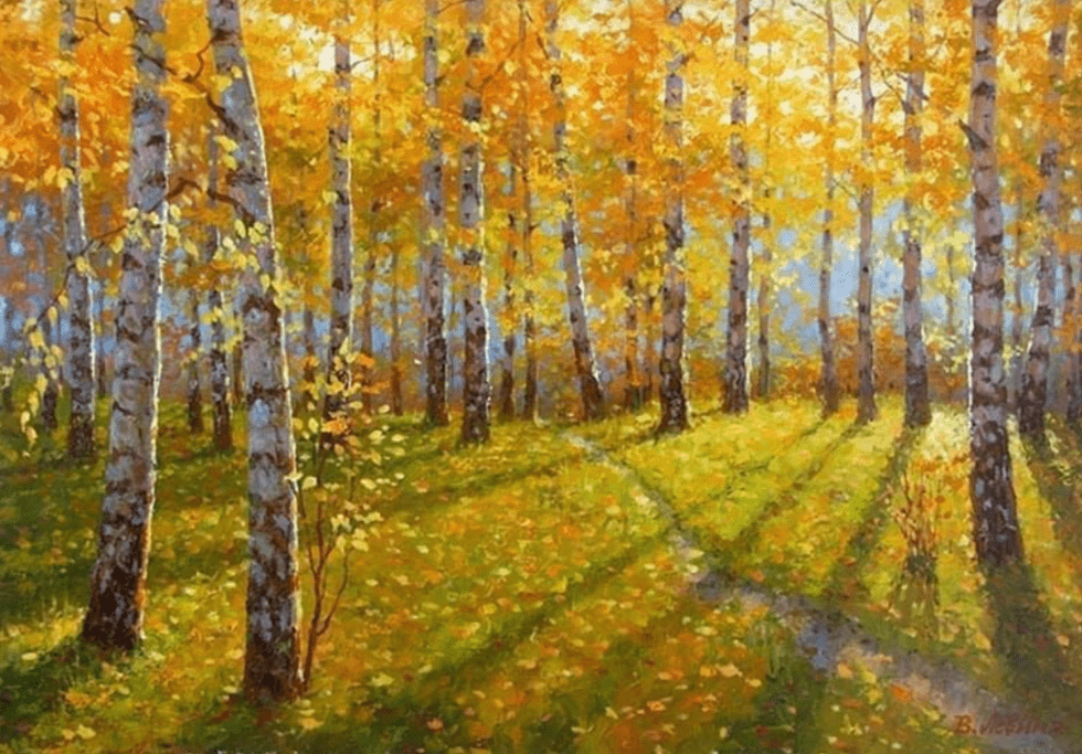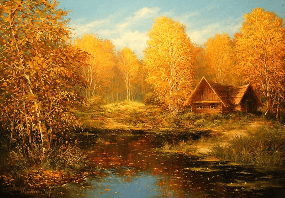 и позолота деревьев радуют глаз. Картина реалистична и одновременно волшебна.