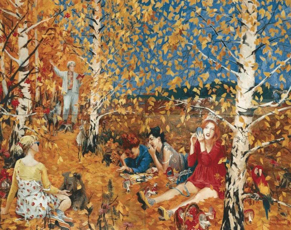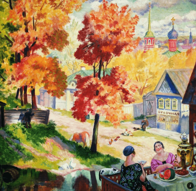 "Осень в провинции". Любимые кустодиевские купчихи на фоне осеннего пейзажа