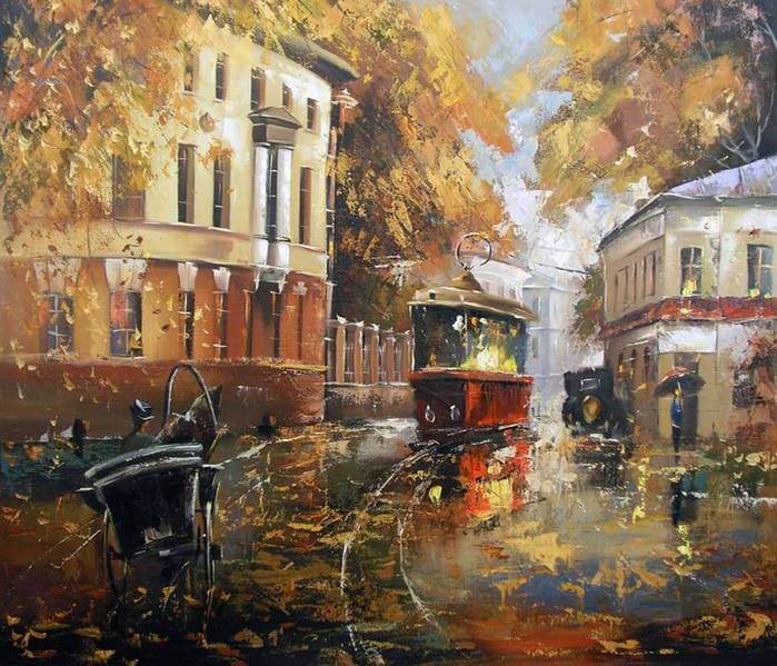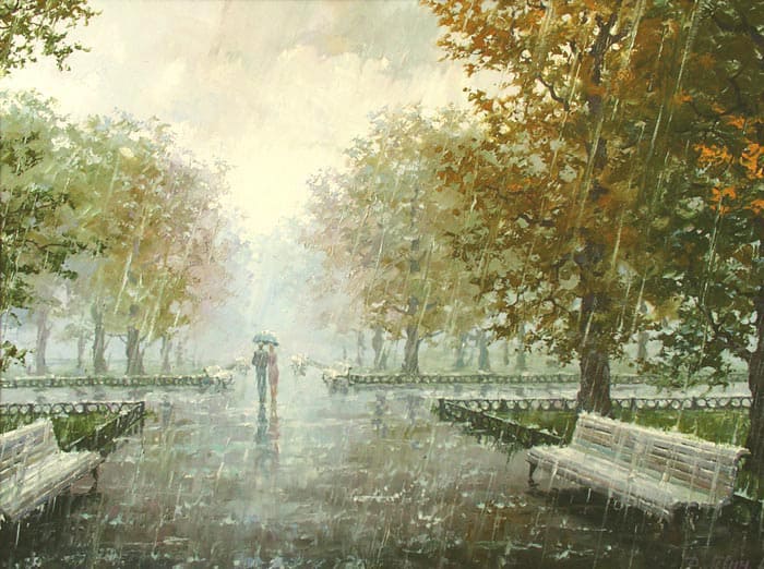 и серость, и яркость красок, и слезы дождя. Конечно, художники не обделяют ее внима-