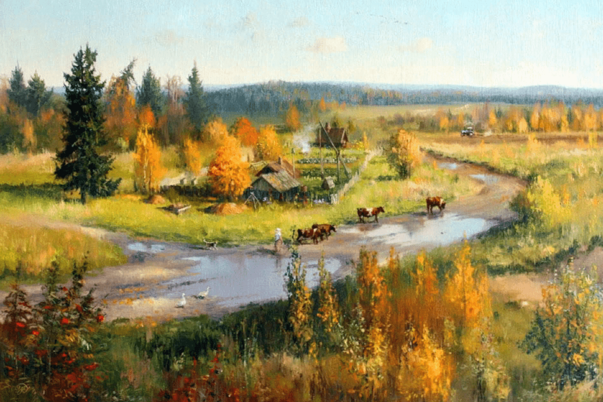 -- классика русской живописи. Чистота тихой речки, тепло пожелтевшей травы