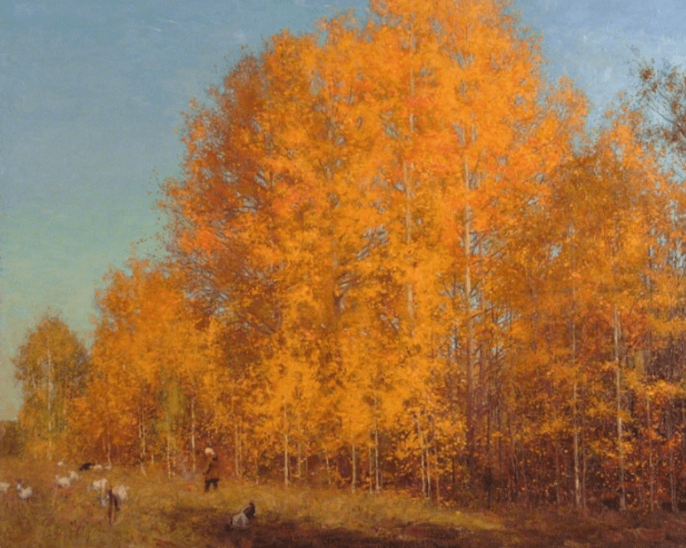 Свет и воздух среди золота русских берез -- это родное, светлое, чистое.