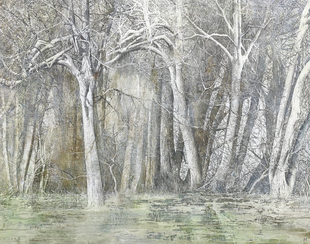 Таким образом, мои картины неизбежно развиваются очень постепенно. Обычно они сочетают в себе периоды работы на природе, иногда в течение многих месяцев и даже лет, и столь же длительные периоды, проведенные в моей студии за работой по памяти и воображению. Постепенное возникновение идеи через слои рисунка очень важно для моей работы и в какой-то степени отражает темп, в котором разворачивается природа, как прошлая, так и настоящая. В этом смысле можно сказать, что я романтик, поскольку нахожу личное выражение в сложностях и мелочах природы, а моя главная цель - найти скрытый дух места.