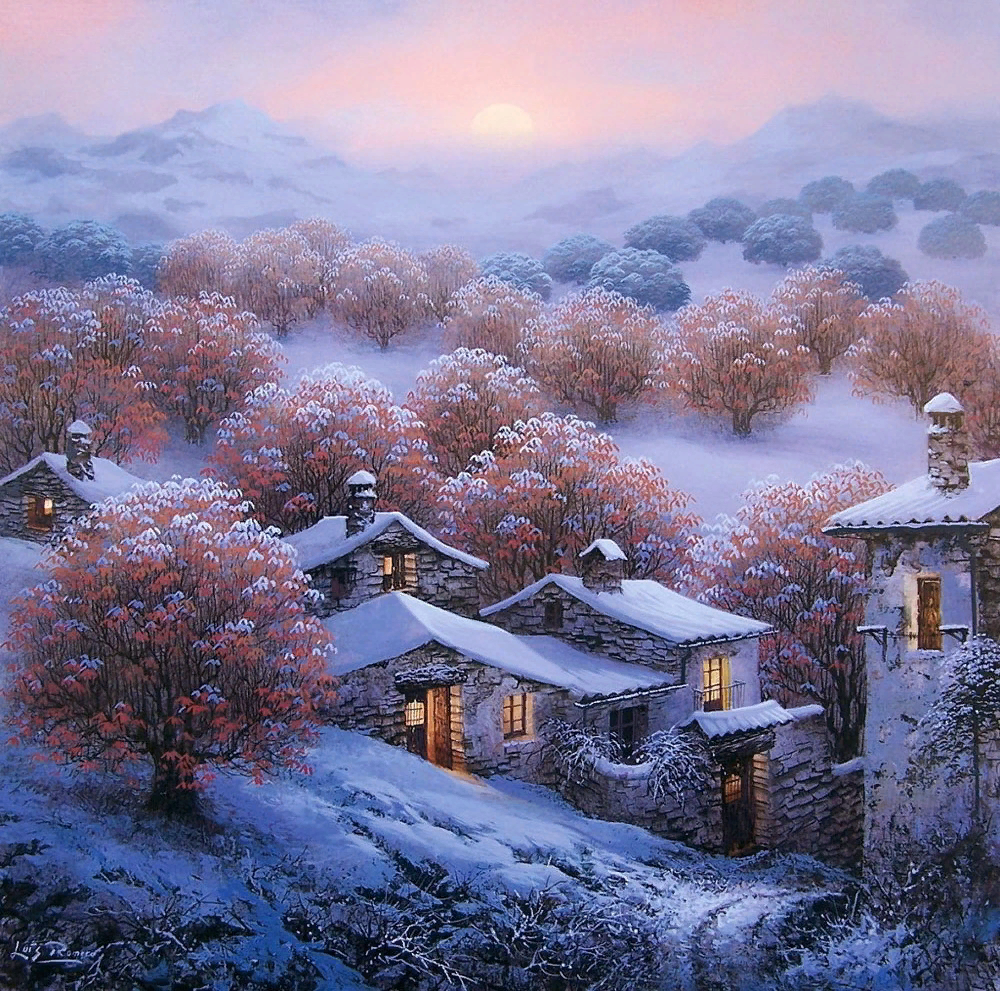 На этих картинах прекрасные художники показали, каким они видят наш мир. Красотой и гармонией наполнены эти чудесные зимние пейзажи. Каждый из них мог бы послужить иллюстрацией к волшебной доброй сказке или той же Рождественской истории.
