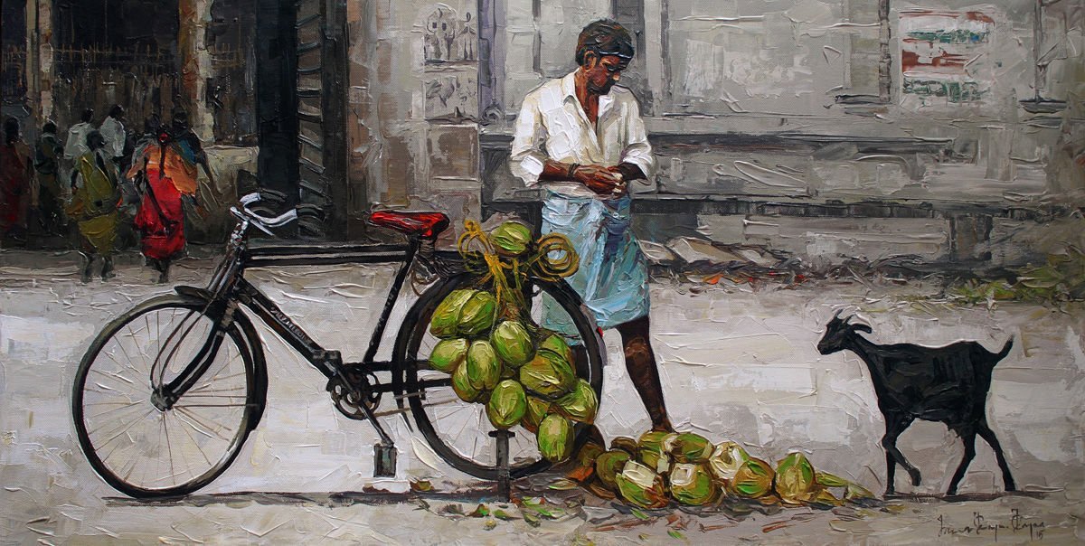 Ируван Карунакаран – индийский художник, пишущий реалистичные картины, основная тема которых индийская деревня. Незатейливая сущность сельской Индии оживает в его произведениях.
