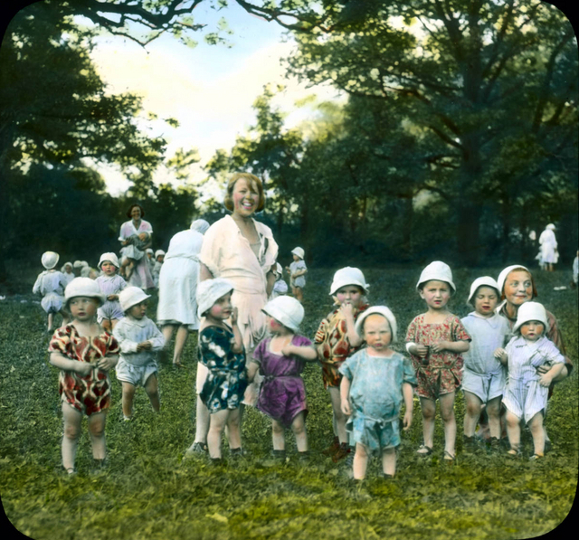 Парк Екатерининского дворца, группа детей с воспитательницей.