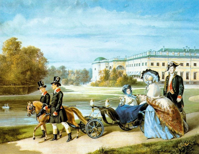 Мишель-Франсуа Дамам-Демартре. «Прогулка императрицы Екатерины II в Царскосельском парке». Впервые опубликовано в альбоме 1811 года.