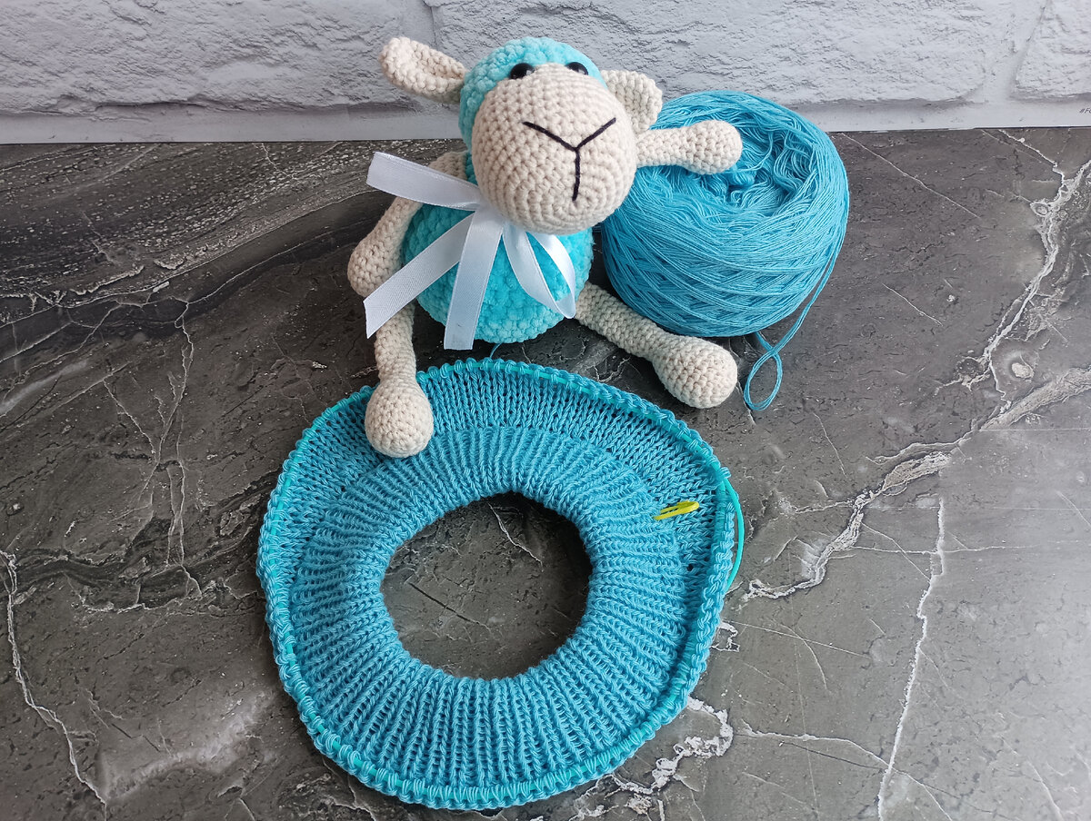 Равномерно убавляю 20 петель, вяжу резинку 1х1 (208 петель), делаю закрытие ирландским способом.