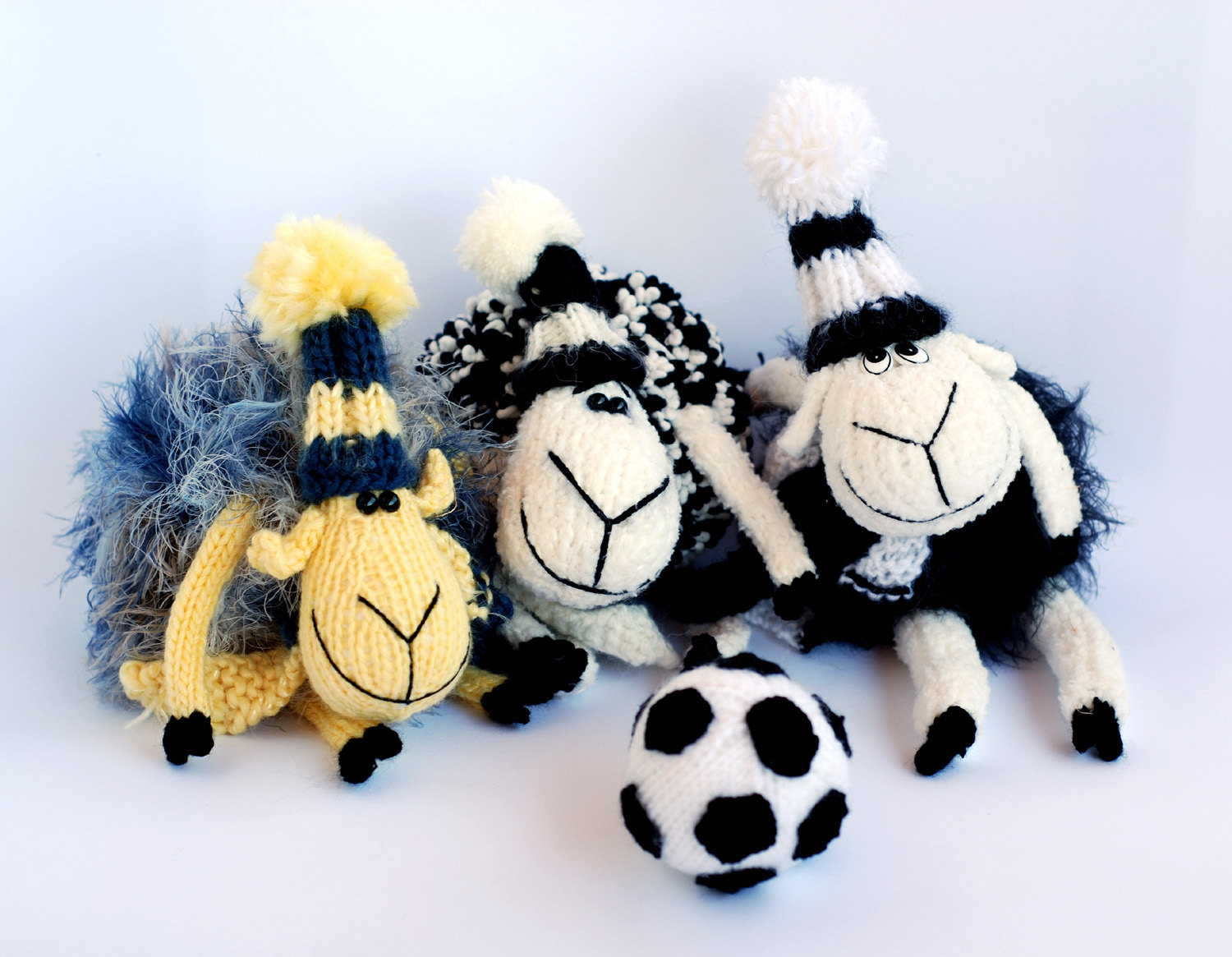 Маленькая компания овечек. Многие из них футбольные фанаты 8)))). Размером приблизительно в 25 см.