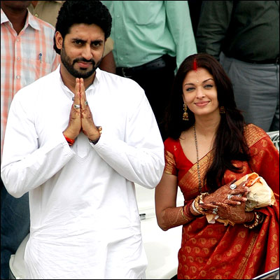 [показать]Церемония началась 18 апреля. В первый день молодожены пели и танцевали для родственников. Героиней второго дня была невеста. По традиции ей нанесли на руки рисунки из хны - считается, что чем дольше они продержатся, тем крепче будет брак. Само же бракосочетание состоялось 20 апреля. В храме Венкатешвара в городе Тирупати на юге Индии Абхишек и Айшу дали обет верности друг другу.<