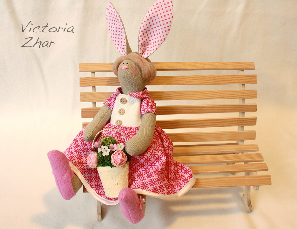 После всего я решила дать зайке в руки корзину с цветами. люблю я всяческие милые аксессуарчики :))) если бы ее не было, то сшила бы белый фартучек с какой-нибудь симпатичной аппликацией :)