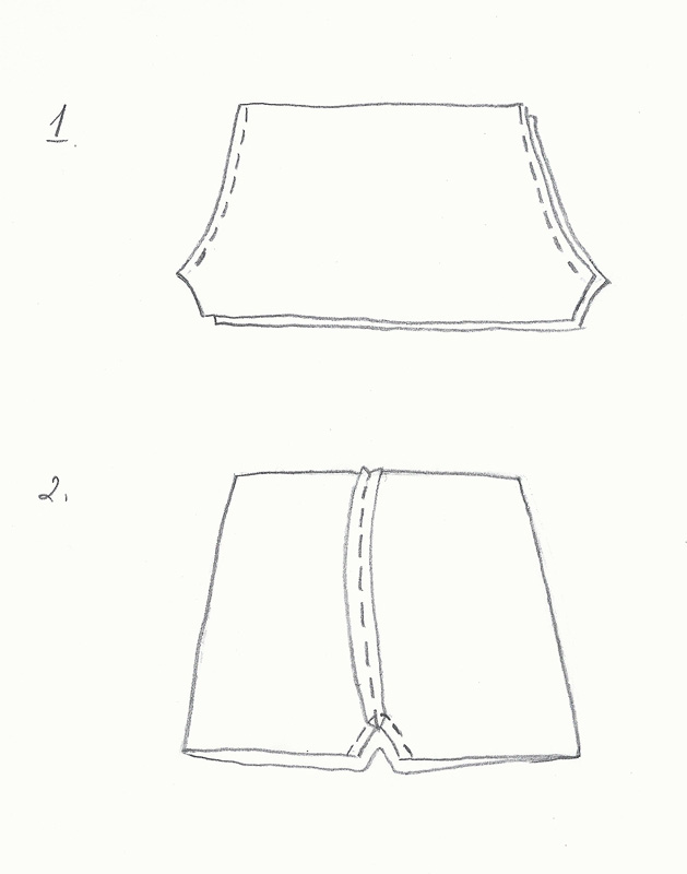 берем выкройку штанишек и укорачиваем ее. пунктиром я обозначила новый край
