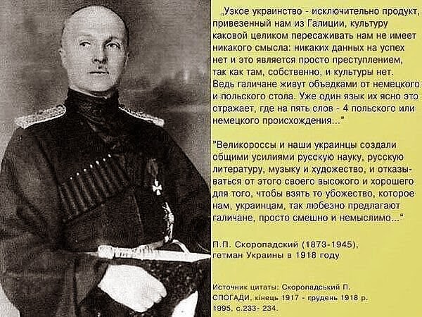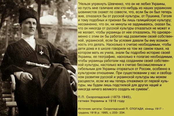 «В действительности Украина — это дело моих рук, а вовсе не плод сознательной воли русского народа. Я создал Украину для того, чтобы иметь возможность заключить мир хотя бы с частью России» (с).