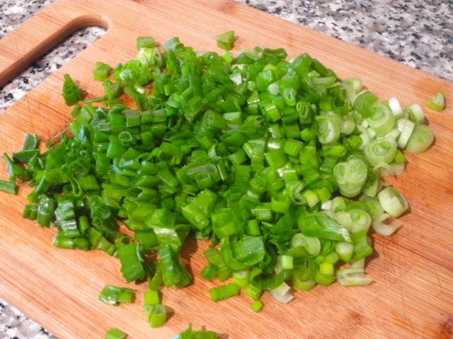 Зеленые части зеленого лука мелко режем.