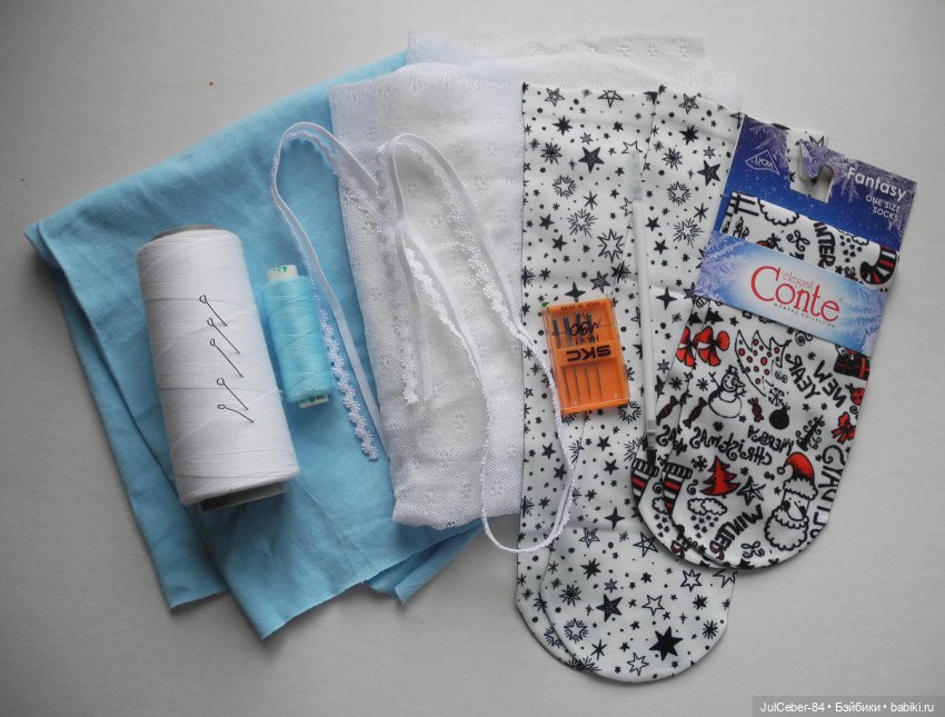 — ажурная бельевая резинка, но если чулочки будут из носков то тогда этот пункт вам не понадобится.