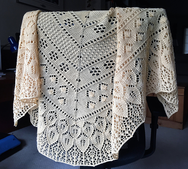 ШАЛЬ ИЗ СЕКЦИОННОЙ ПРЯЖИ С УЗОРНОЙ КАЙМОЙ. КРЮЧОК.