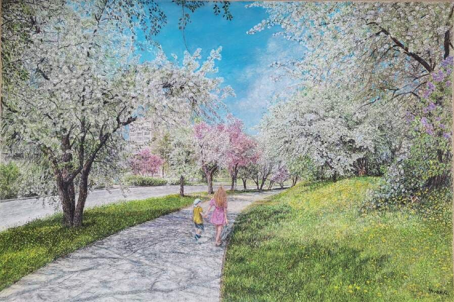 Сергей, прекрасный рисовальщик и знаток истории искусств, привносит в работы графизм рисунка, создавая совершенно новый пластический язык. Ольга, являясь тонким колористом и, одновременно, моделью и музой, создает в работах уникальный гармоничный образ. Вечность тем делают эти работы вневременными. Через средневековые темы художники отводят женщине самую важную роль. Мечтательница, она уходит от реального мужского мира, в мир своих грез.
