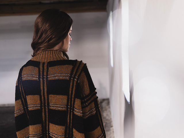 Элегантная водолазка с необычным кроем рукава наподобие реглана выглядит очень стильно. Ее красота заключается в изысканной простоте. Узор свитера создается лицевой гладью и ее пересечением. Решетчатое пересечение лицевых рядов на грудной части свитера является его основным украшением, которое сочетается с узором, создаваемым проймой. Нейтральный оттенок пряжи подчеркивает сдержанность изделия.