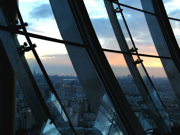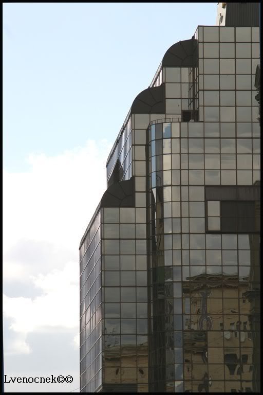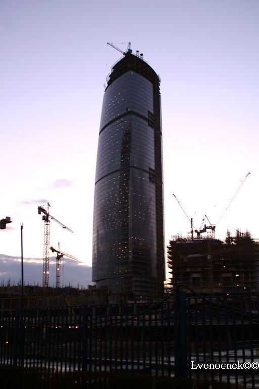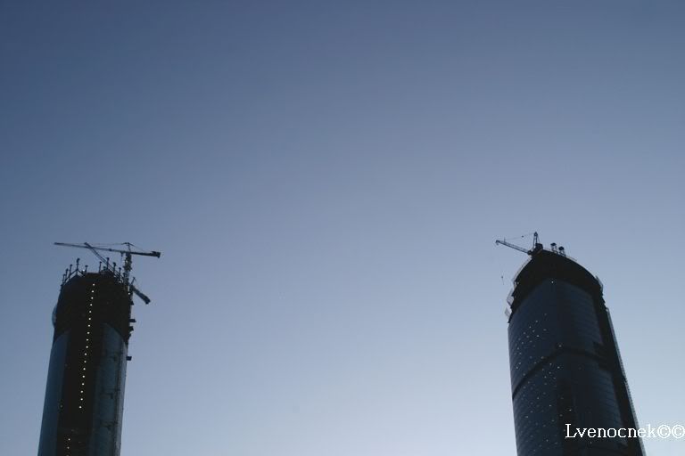 Я первый раз видела небоскрёбы в близи, благо Питер не изобилует этими дурами. Самое потрясающее воспоминание - это пустой коридор ст.м. "Деловой центр"...ты идёшь один и с тобой только отражения светильников...и ни одного человека вокруг .....БЛЕСК ламп, приломлённых об зеркало поверхности... Башни, как - то трагически напоминают близнецов. И ты боишся, что вот - вот кран сверху рухнет......Вы помните, готические, бегущие ввысь, соборы, которые должны были напоминать человеку о малости перед БОГОМ, а небоскребы напоминаю о малости отдельного человека перед ПРОГРЕССОМ. НУ хватит рассуждений.....фото...