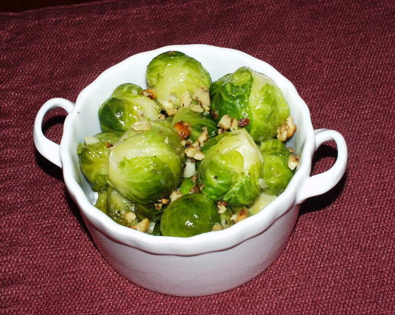 Грецкие орехи измельчить, прогреть на сковороде. Всыпать в капусту, тщательно перемешать и тотчас подавать.