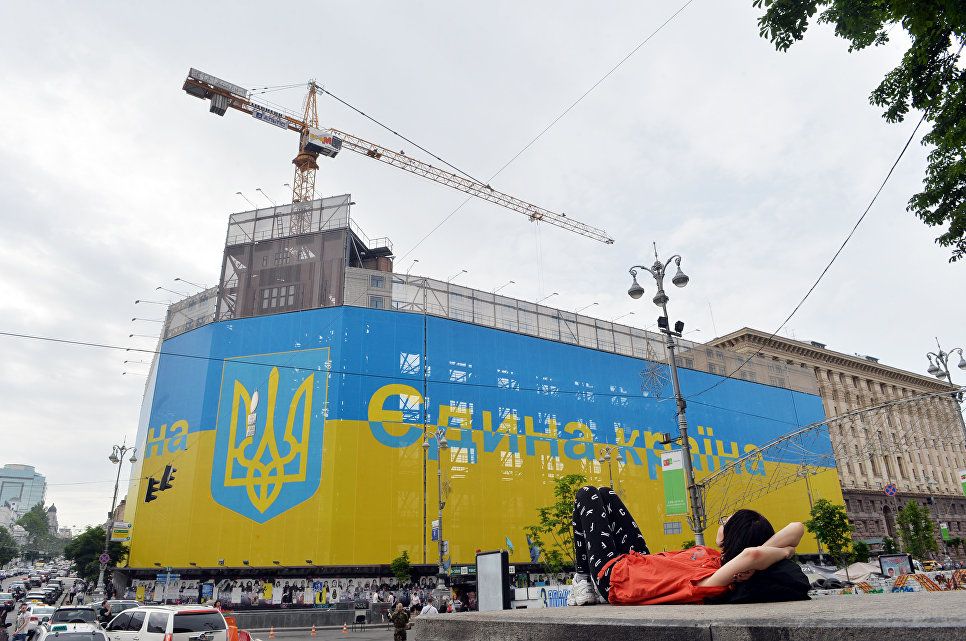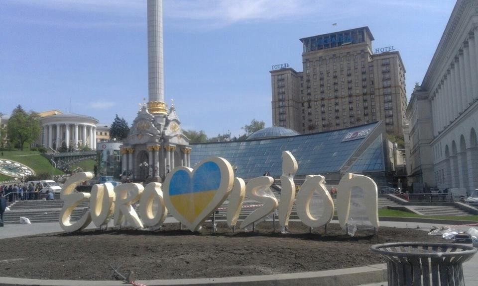 В Киеве на Майдане Независимости установили логотип песенного конкурса "Евровидение-2017...