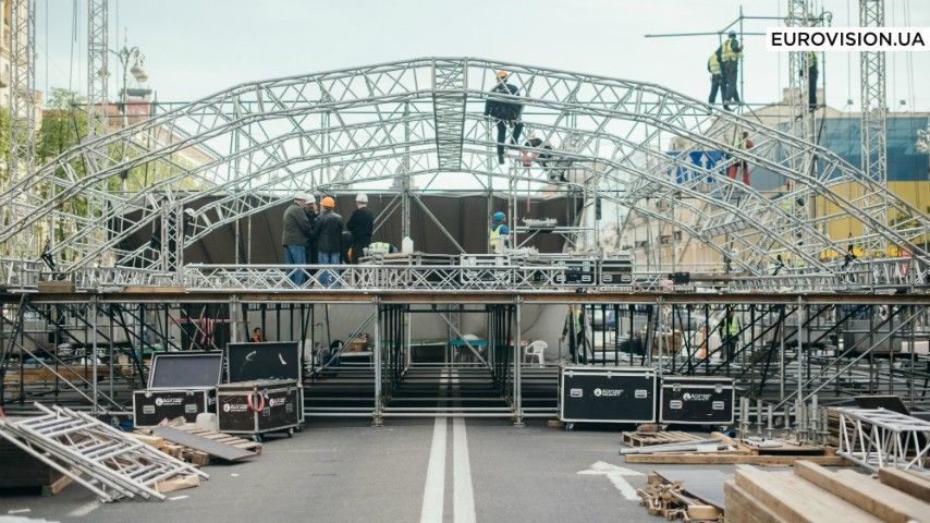 "Официальная фан-зона песенного конкурса насчитывает 13000 квадратных метров. Площадь будет поделена на три основные зоны: партнерская зона, фудкорт и зона сцены. Сейчас происходит монтаж сцены, где будут проходить концерты с участием конкурсантов песенного конкурса и украинских артистов. Также монтируют свои стенды партнеры и спонсоры Евровидения, где запланированы развлекательные мероприятия для посетителей", - рассказал менеджер Eur...