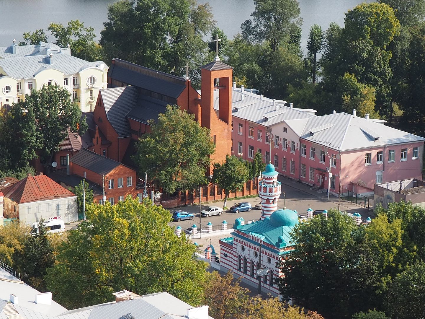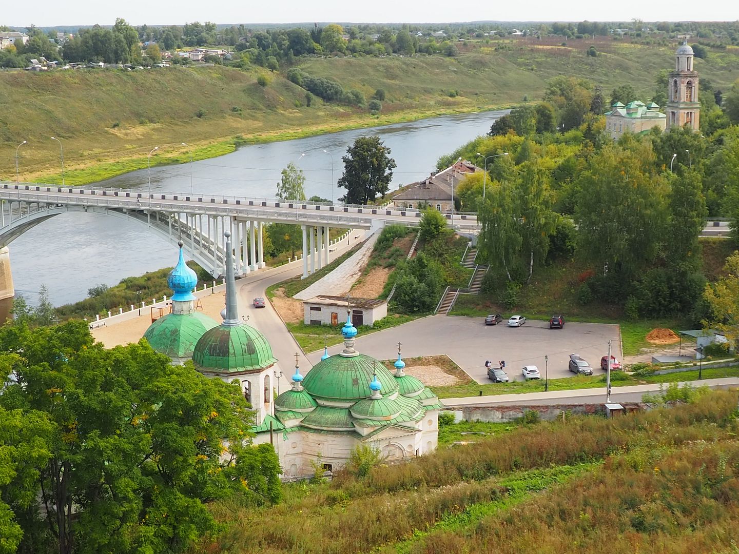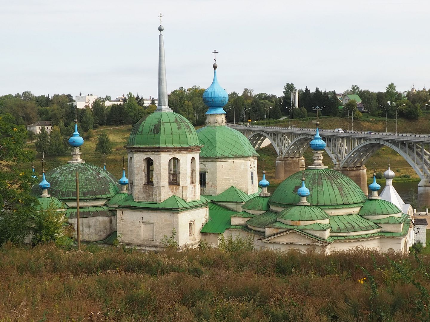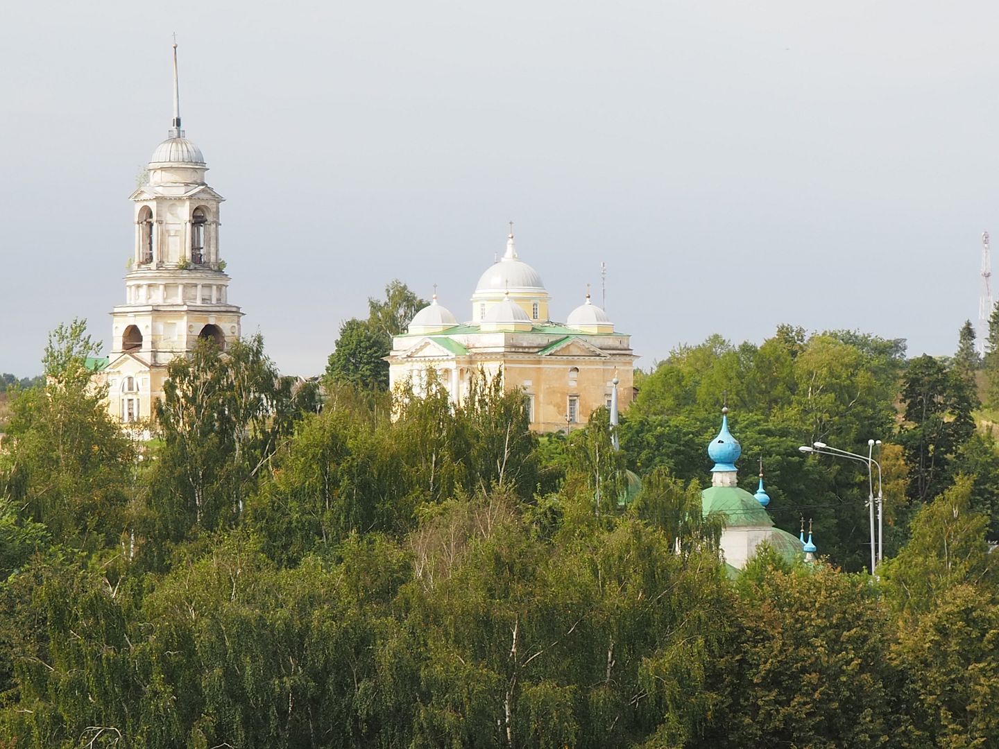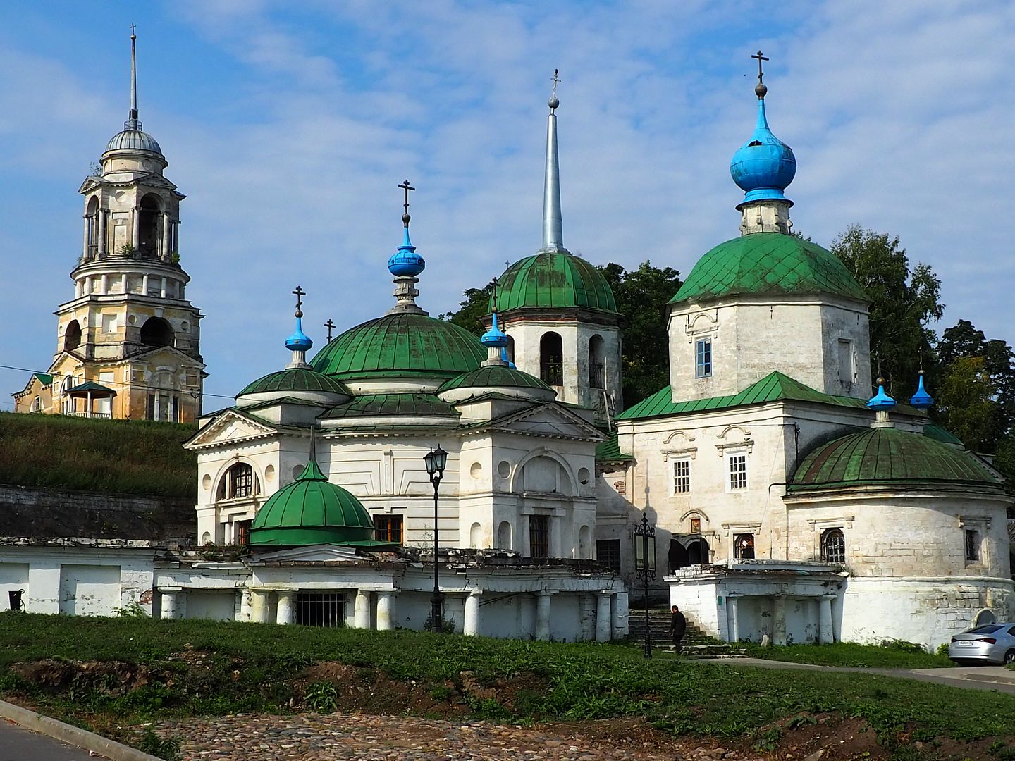 Старица - город, в котором никто из нас ни разу не был, очень понравилась нам с первого взгляда. Мы выгрузились недалеко от моста и отправились смотреть Пятницкую церковь, которая на самом деле представляет собой комплекс из трёх храмов: Рождества, Параскевы Пятницы и Нила Столбенского. Там на ящике был очень душевный дяденька, который рассказал нам про храм, пустил всё посмотреть (два из трёх храмов в стадии восстановления), а за 100 рублей там можно подняться на колокольню и позвонить в колокола, сколько душе угодно, что мы с удовольствием и сделали. А спустившись, попросились ещё раз в Параскеву, где дивная акустика, и спели там тропарь и кондак Успения, а ещё - Царице моя Преблагая (правда, в конце пришли люди и я позорно сбилась, но всё равно нам очень понравилось).