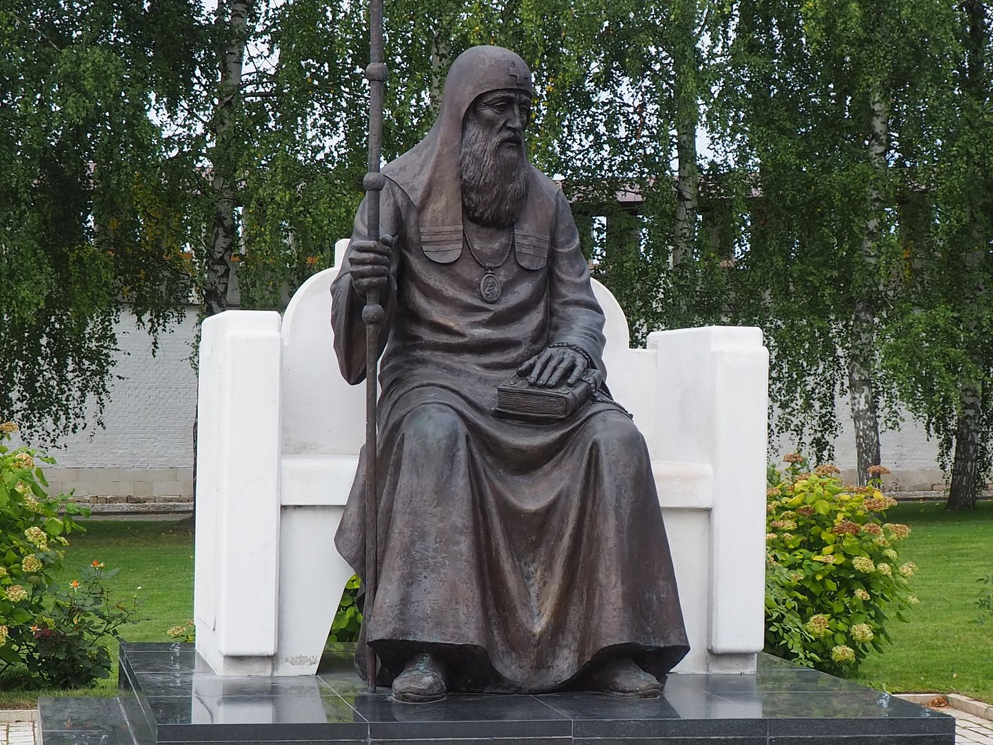 У этого памятника патриарху Иову первоклассники делали групповое фото с администрацией.