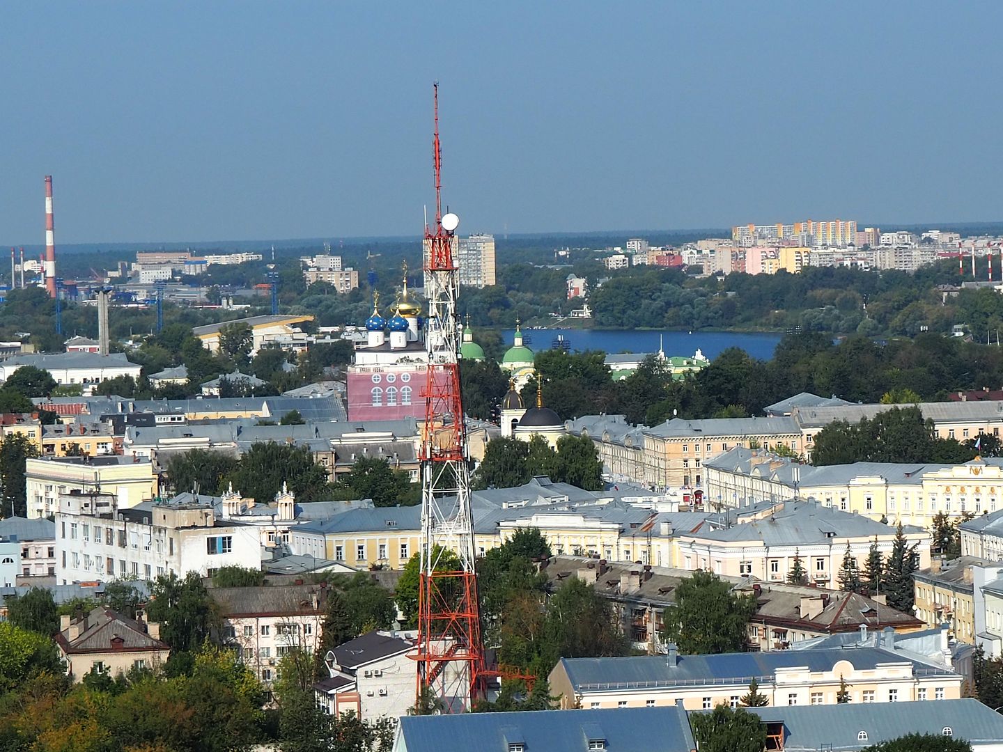 А потом мы поднялись наверх к Борисоглебскому собору, где в находящейся перед ним церкви Спаса тоже пускают на колокольню - самую высокую в городе. Тётенька, которая продаёт билеты, радостно напутствовала нас словами: "Там круто, вам понравится", - и не ошиблась.