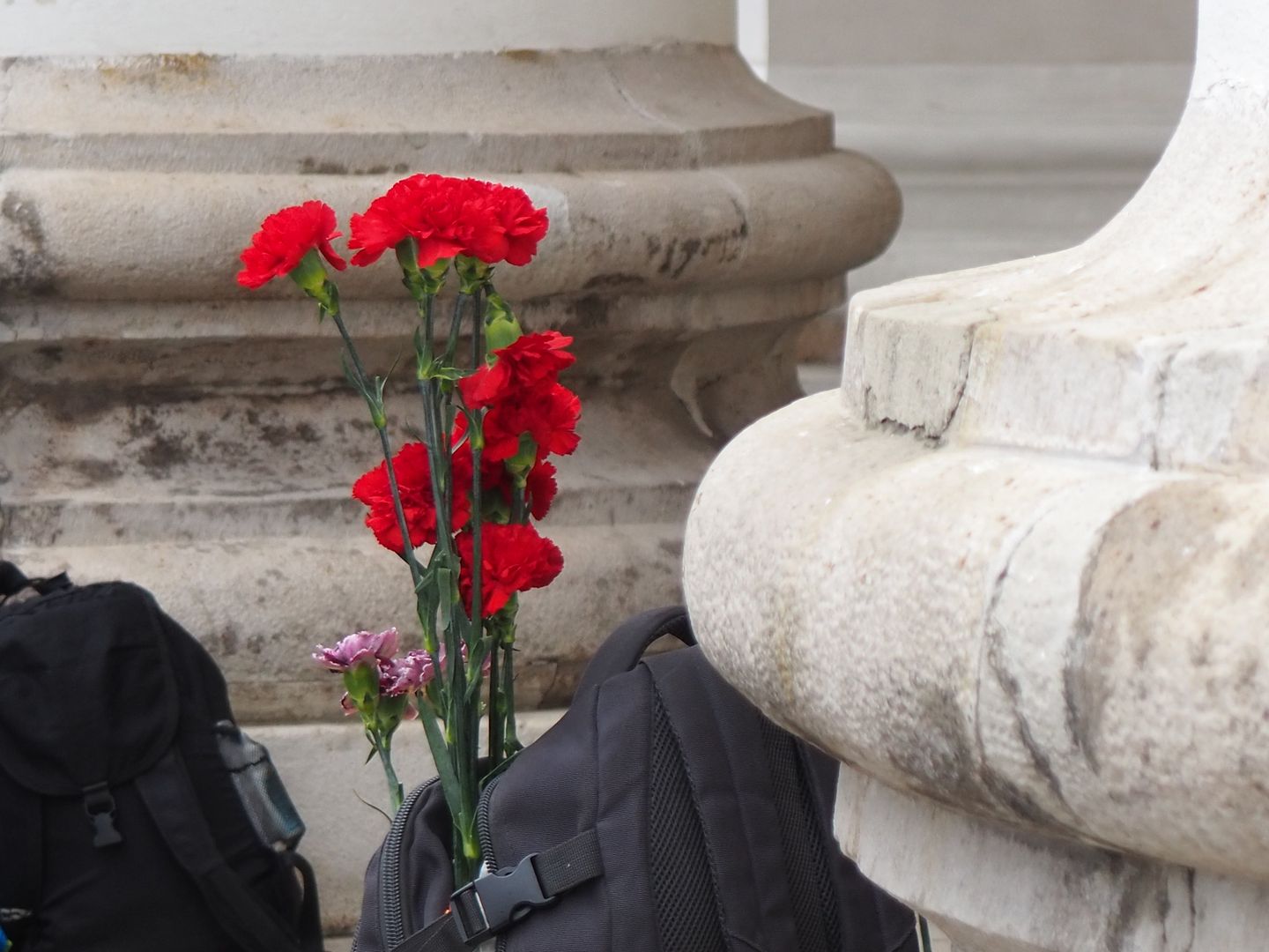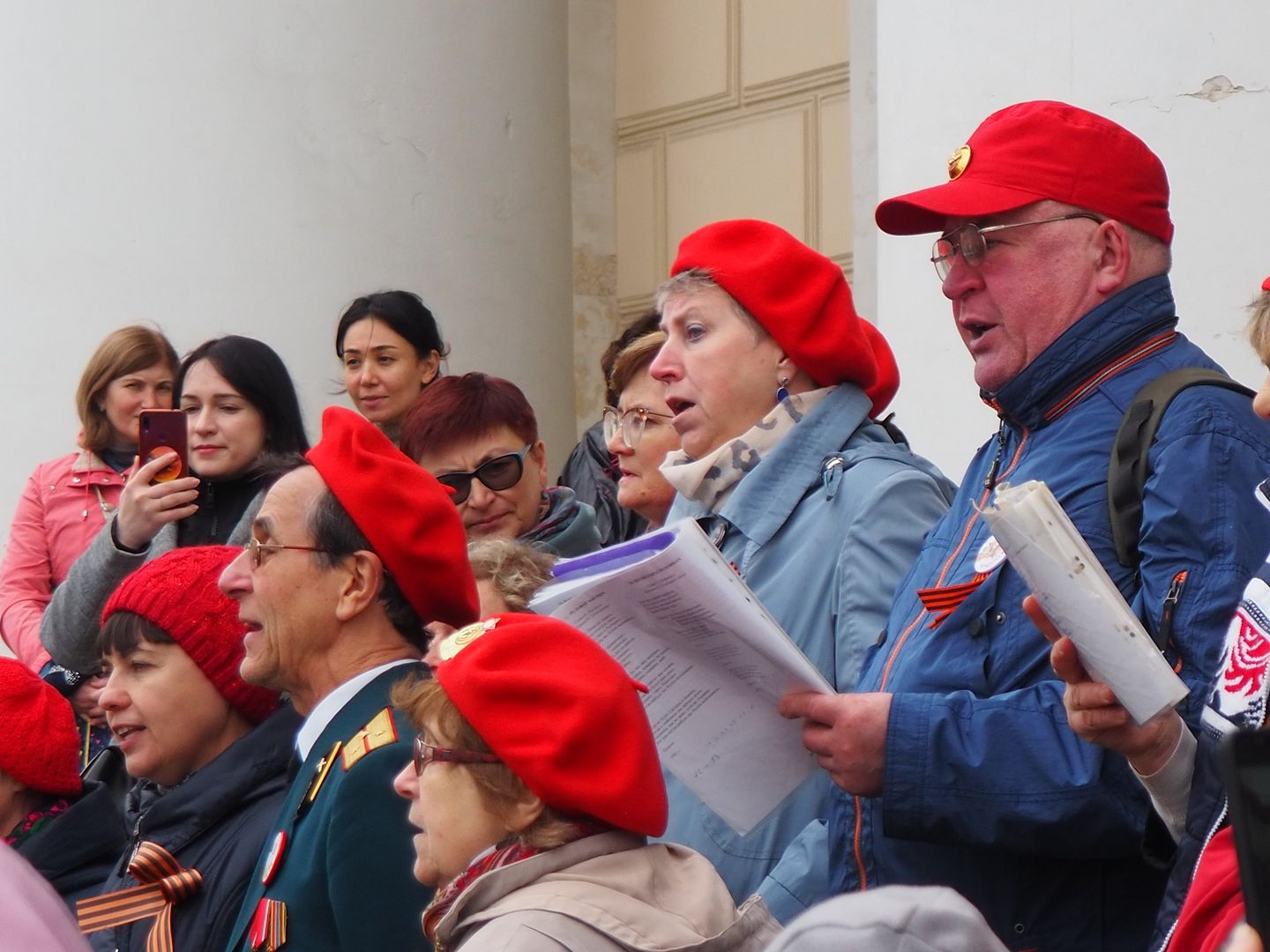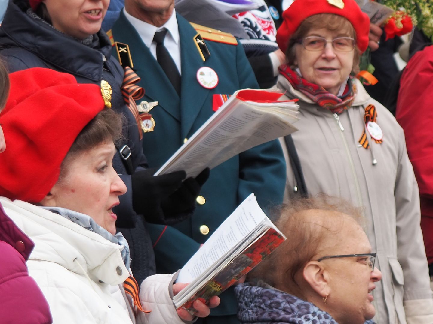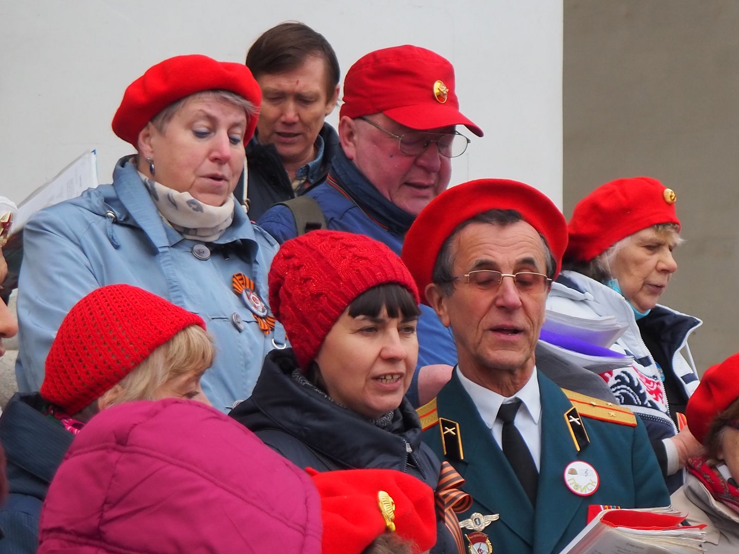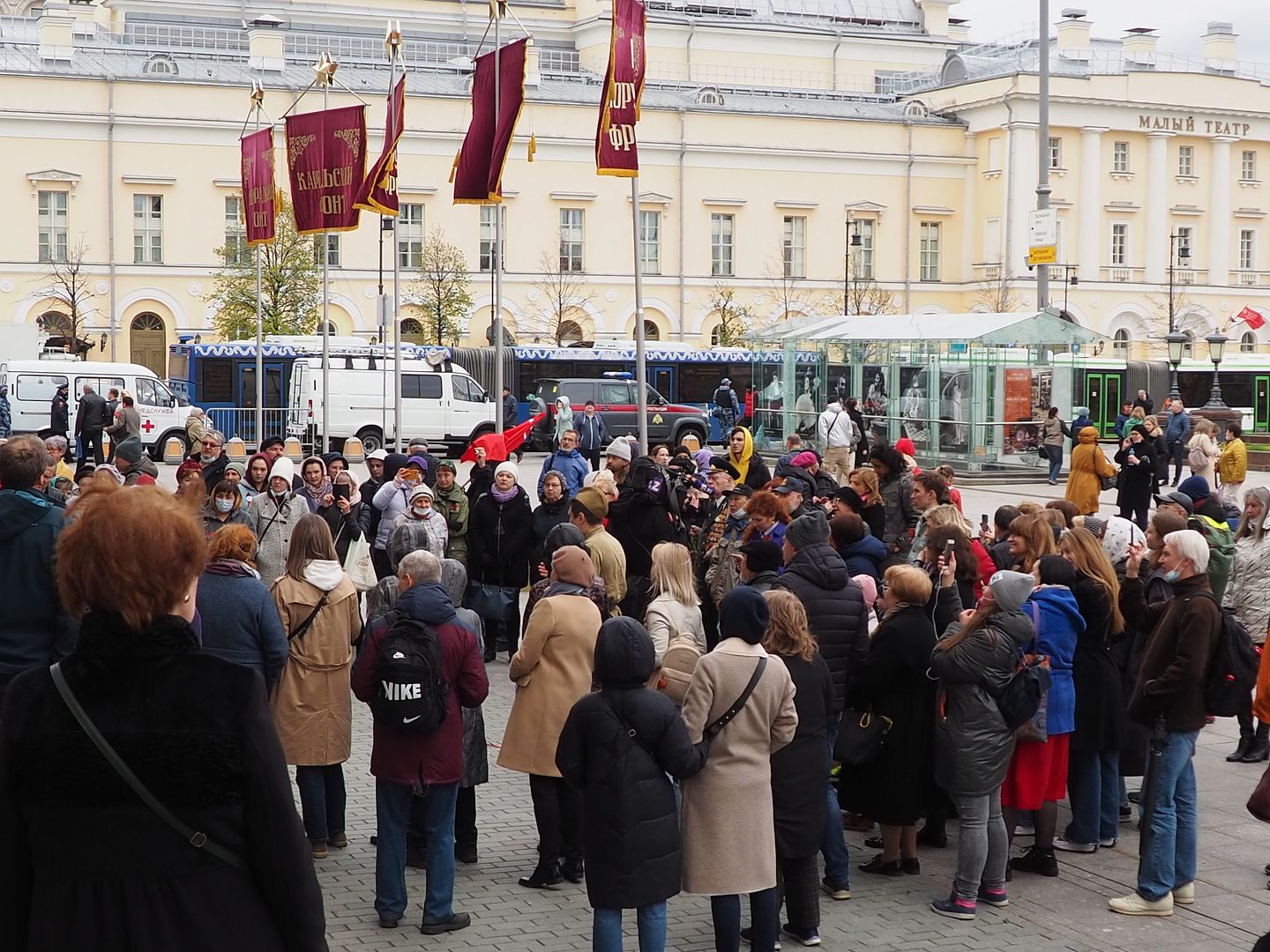 Оказалось, что Кремль обнесён кордонами (по крайней мере, со стороны Моховой плотно), в Александровский сад народ не пускают, но зато впервые с 2015 года можно пройти к Большому (в 2016 году там уже в основном было закрыто, а с 2017 закрыто более чем глухо). А на ступеньках, как в былые годы, вполне себе поют те самые люди, которых можно видеть и на некоторых давнепрошлых моих фотографиях. И танцуют, и рассказывают слушателям, с какими событиями связаны те или иные песни. Я походила вокруг, пофотографировала, чуть подпела, но к этому времени в общем-то замёрзла, поэтому отправилась домой обедать и греться.