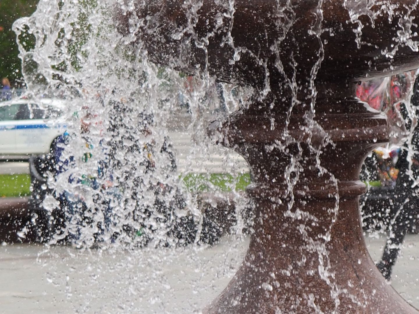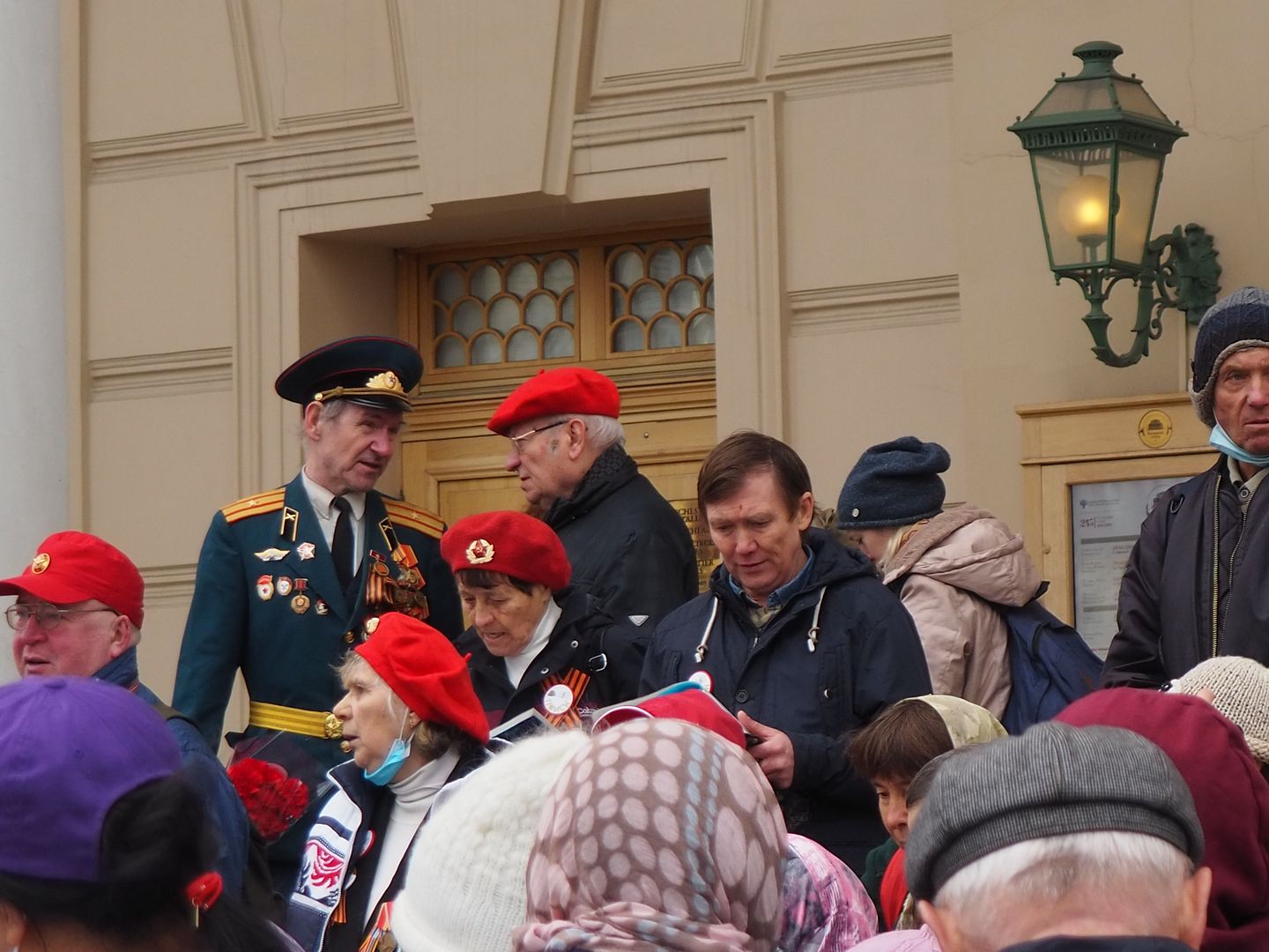 Сначала хотела начать в полдень с МХАТа с Победным хором, но поскольку я сегодня не просто как обычно проспала парад (не люблю я его), но вообще встала где-то около 11-ти (да, в плане есть и дрыхнуть мне практически нет равных), а к выходу была готова только в первом часу, я решила, что начну с Парка Горького, где мне два года назад очень душевно пелось с двумя разными компаниями. Однако в Парке никого не наблюлось, так что я его прошла насквозь со стороны набережной, перешла на другую сторону реки и пошла в центр посмотреть, что происходит там.