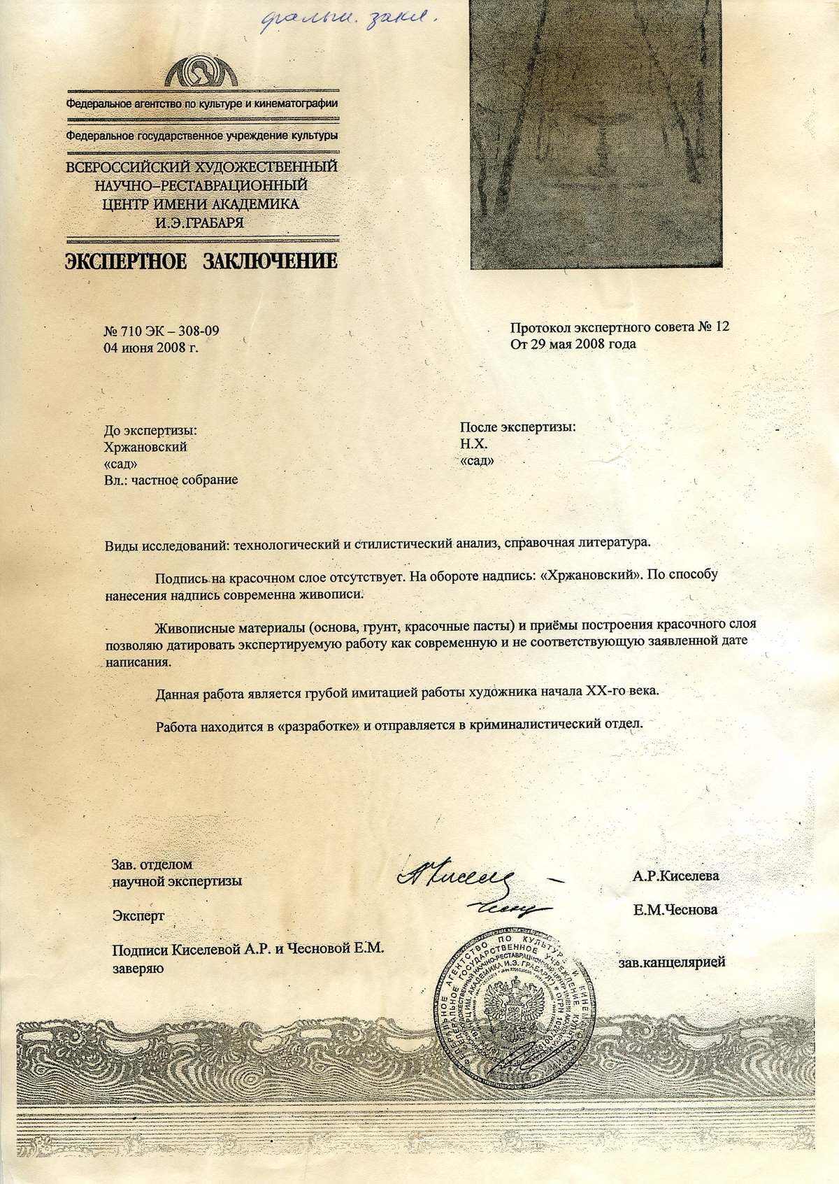 В США в Гарвардском университете эксперты до сих пор спорят о подлинности неожиданно обнаруженных работ Джексона Поллока, аргументируя субъективные эстетические доказательства результатами физико-химических анализов. Я совершенно уверен в том, что пока существует изобразительное искусство, имитации, фальшивки неизбежны.