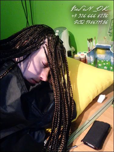 Итог - 216 косичек на всю длину с "живым кончиком" (цвет - 100 "жемчуг")