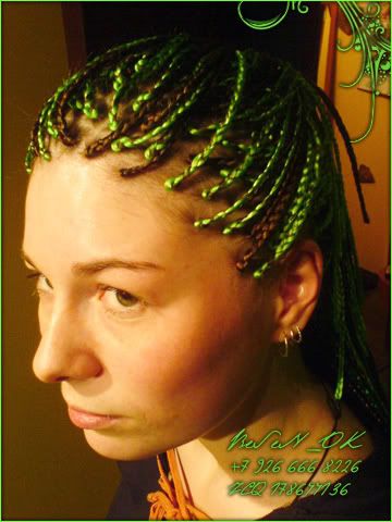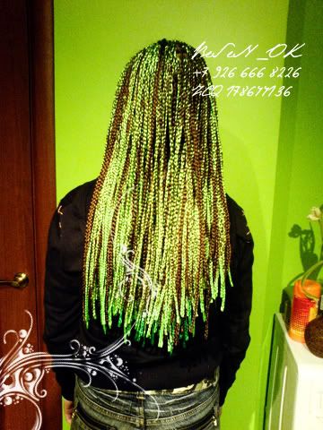 208 косичек, три цвета (зелёный, салатовый, натуральный)