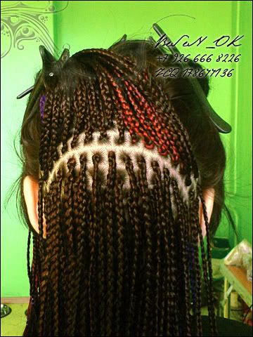 Косы по длине волос. Опять же - три пачки Аиды, даже осталось ещё %)