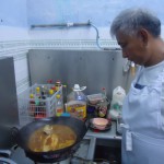 Кроме того, что мы ходили по разным необыкновенной вкусноты ресторанам и кафе (иногда по внешнему виду кафе нам казалось, что ничего хорошего там быть не может, но оказывалось, что за этой внешней простатой скрываются такие свежайшие вкусности, что остановиться было невозможно), Мастер нам готовил сам! За 2 часа он готовил ужин из 5-ти блюд на 20 человек!