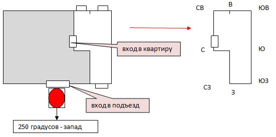 Причем сделать это нужно не просто посмотрев, где солнце встает, а обязательно измерив компасом направления, соответствующие именно вашему дома (направления могут отличатся у каждого подъезда. Пусть вас это не удивляет. Мы смотрим не просто глобальные направления сторон света, а именно ту энергию, которая входит именно в ваш дом и подъезд).