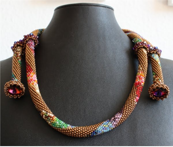 [показать]<p> Увиденное где-то фото украшения не давало мне покоя. Оно вот тут-мастер из германии. http://3.bp.blogspot.com/_3Ctpy14zUJ4/TAo4eoQk4XI/...FXtYfSv0S2c/s1600/IMG_2317.JPG Хотелось эту идею воплотить иначе-в роскошном и немного восточном варианте. Вместо жгута из бисера я использовала шнурок из золотой натуральной кожи. Куча свариков. Конструкция трансформируется в немыслимое количество вариантов.
