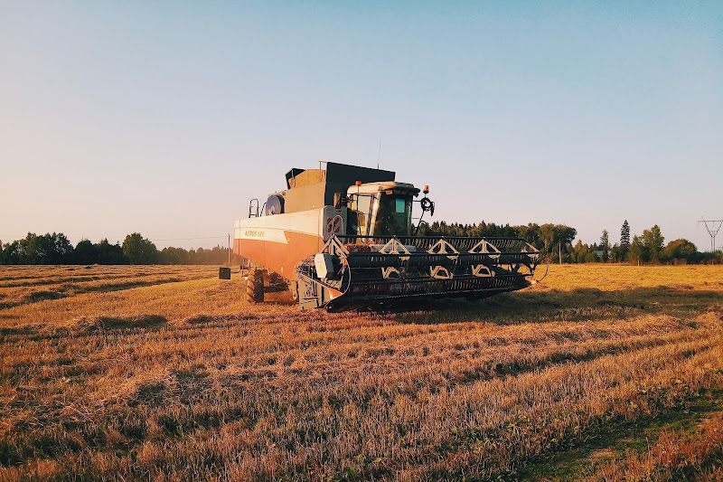 Неожиданная встреча на поле. Не весь урожай зерна еще собран, как оказалось. И "золотой час" как нельзя кстати. Харвестер здесь похож на большого жука, копошащегося в сене. Не приходилось раньше видеть.