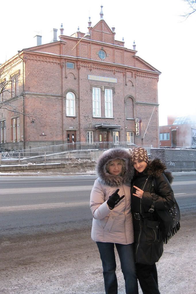 А пока же мы "излюбленным" способом этого путешествия, то есть, галопом, домчали обратно до вокзала, помахали Тампере ручкой (до скорокй встречи!) и поехали в Хельсинки на встречу со шведско-финско-немецкими заразами:) Не буду описывать нажи похождения в Хэллах, в поисках бюро по продаже билетов на трамвай, потом отеля, а потом и Финского дома Финской культуры. Скажу только, что примчались к нему мы практически к семи. Конечно, уже перед нами была такая нехиленькая змея ко входу в Дом Культуры. Но не менее дисциплинированная, чем в Тампере. Мы вот стали в хвост, а за нами была такая дорога, ну какбэ заезд такой для машин. По ней за все это время проехало то две машини, но дисциплинированные финны, которые стояли за нами, стояли по другую сторону