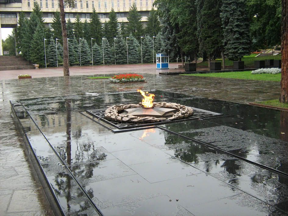 На этот раз верхняя полка была моей на законных основаниях :) Ибо нижних на момент покупки, конечно же не было. Но я, в общем-то, и не против :) Главное, не смотреть, как я туда взгромождаюсь, а остальное ерунда. Утром, прибыв в Алмату, как всегда отправилась на прогулку. Заранее решила пойти в парк имени 28-ми Панфиловцев. Есть у нас там и такой. Жаль только, что погодка не очень-то способствовала прогулкам в парке, ибо дождь лил, как из ведра. Накануне поездки я купила-таки себе новый зонт. Правда, дома он мне особо не зачем, я все равно его никогда не беру, даже когда дождь идет, тупо забываю :) А тут вот пригодился, хорошая проверка на прочность вышла для зонтика. Однако, 10 часов времени надо было убивать, поэтому в парк я все-таки пошла. Там, собственно, ничего особенного, но просто очень красивый и чистенький парк. А в дождь и подавно! Мне даже удалось найти там под деревцом почти сухую скамейку и скоротать на ней пару часиков за чтением Пратчетта. По пути обратно набрела на магазин "Меломан" и конечно не ушла от туда без дисков. Решила, что такое кино, как "Андеграунд" Кустурицы необходимо иметь на DVD и в хорошем качестве:) Пообедала в кафешке и поехала уже непосредственно в аэропорт.