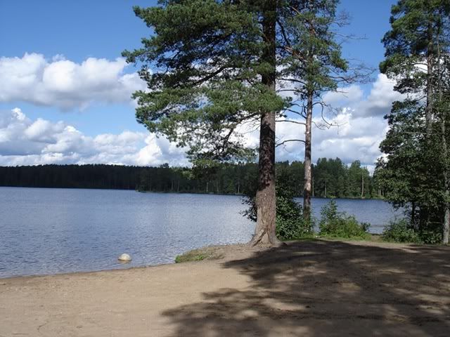 А вот с озерами, конечно, для меня был полнейший облом. Их там, конечно, ОЧЕНЬ много, но одно холоднее другого... Купаться невозможно... Особенно озеро Щучье, которое нахоилось ближе всего к дому - это вообще не озеро, а вечная мерзлота какая-то... И вот сидишь на берегу этой красотищи, и с тоской думаешь, что за несправедливость такая - столько воды, а купаться нельзя! Для меня, как для водоплавающего существа, это ваще было чем-то невозможным. Нет, есть там пара озер, в которые можно окунуться секунд на пятнадцать... Помню, мы с дядей катались по одному таком озеру на резиновой лодке. Мы тогда с сестрицей вылезли в воду, держались за борт лодки сзади, а дядя плыл. Правда, минут через пять мы так закоченели, что пришлось возвращаться на берег и греться. Тогда же я впервые попробовала рыбачить... Эксперимент закончился полным крахом, ибо закинуть удочку так, чтобы крючок хотя бы долетел до воды, мне так и не удалось :) А второй раз я там купалась непосредственно в озере Боровом. У меня от холода немедленно свело обе ноги. Хорошо, что я хорошо плаваю, терпелива к боли и не имею привычки паниковать по пустякам. Доплыла кое-как до берега, но приятного было мало.